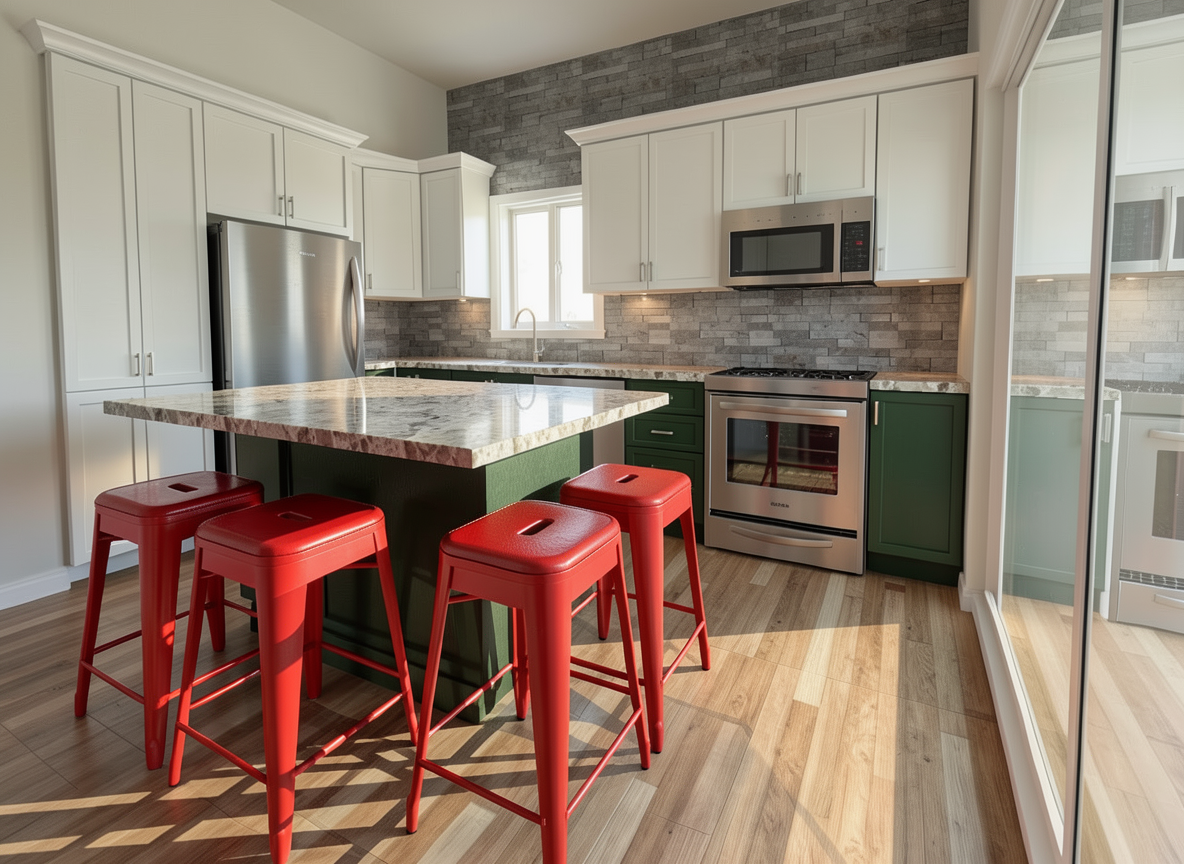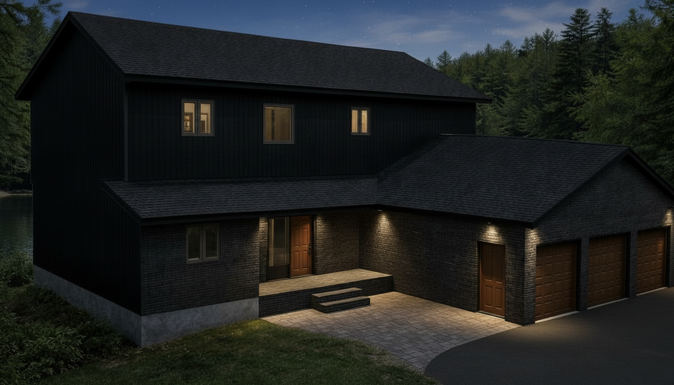 remove furniture from view keep all other elements the same add a man and female hula dancer on the patio