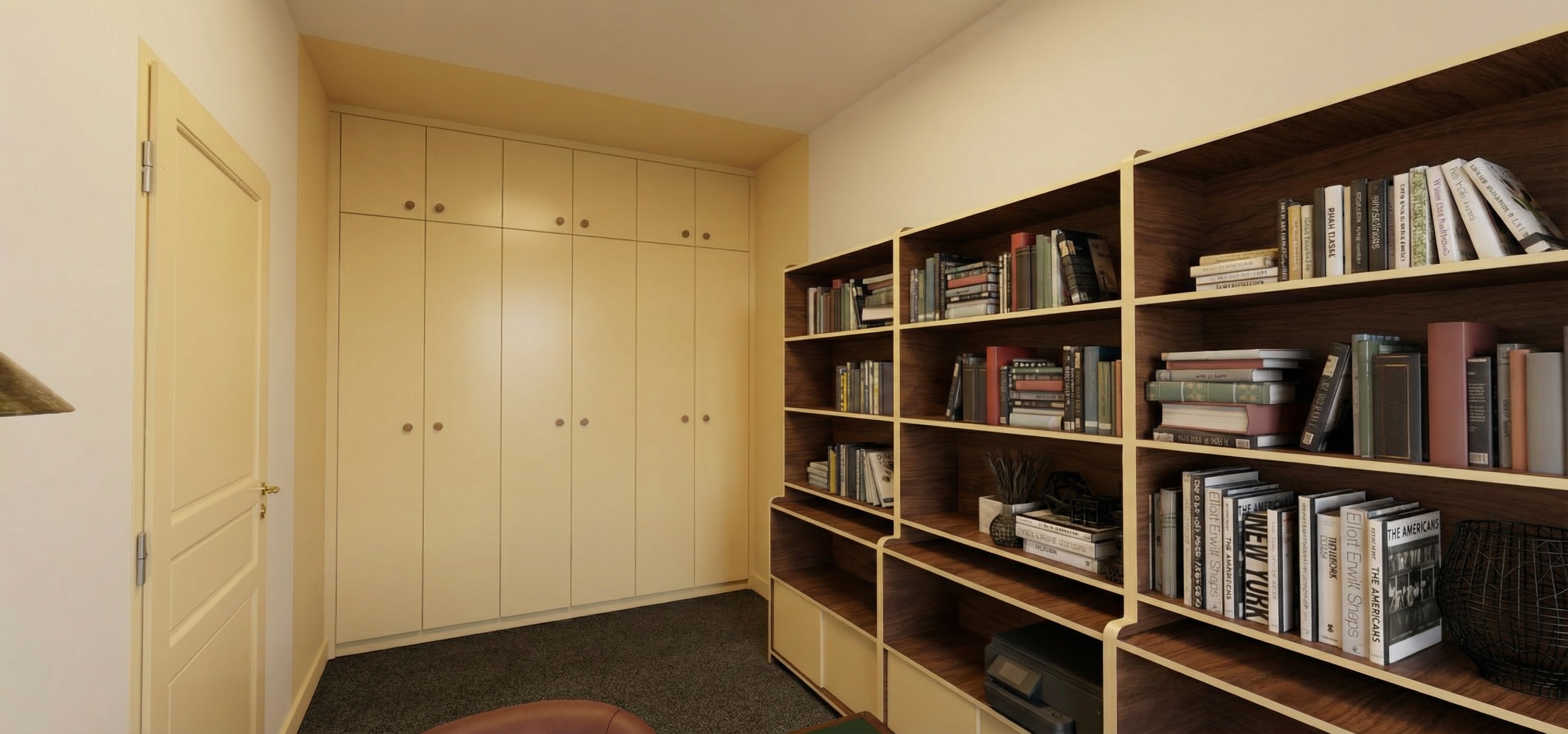 clairci le jaune et ajout des vitrines en verre pour fermer la biblioth que