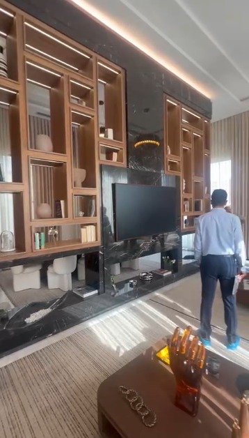 tv nitesi salonun ortas nda ki iki kolonun aras nda raflar n arkas ndan salonun di er taraf g z k yor tv st nde bulunan raflar n arkas ndan da salonun arkas g z k yor arka tarafta cam do ramalar var do ramalardan bah e havuzu g z k yor tv nitesinin ah aplar t ts lenmi me e rengi olmal ve panellerin hepsi fugal olmal raflar n arkas bo olmal pencereler modern do rama pencereler olmal raflar n i inde s s e yalar arap vs olabilir ama raflar n i inden d ar s g z kebilmeli foto raftaki gibi mermer detay da olmal
