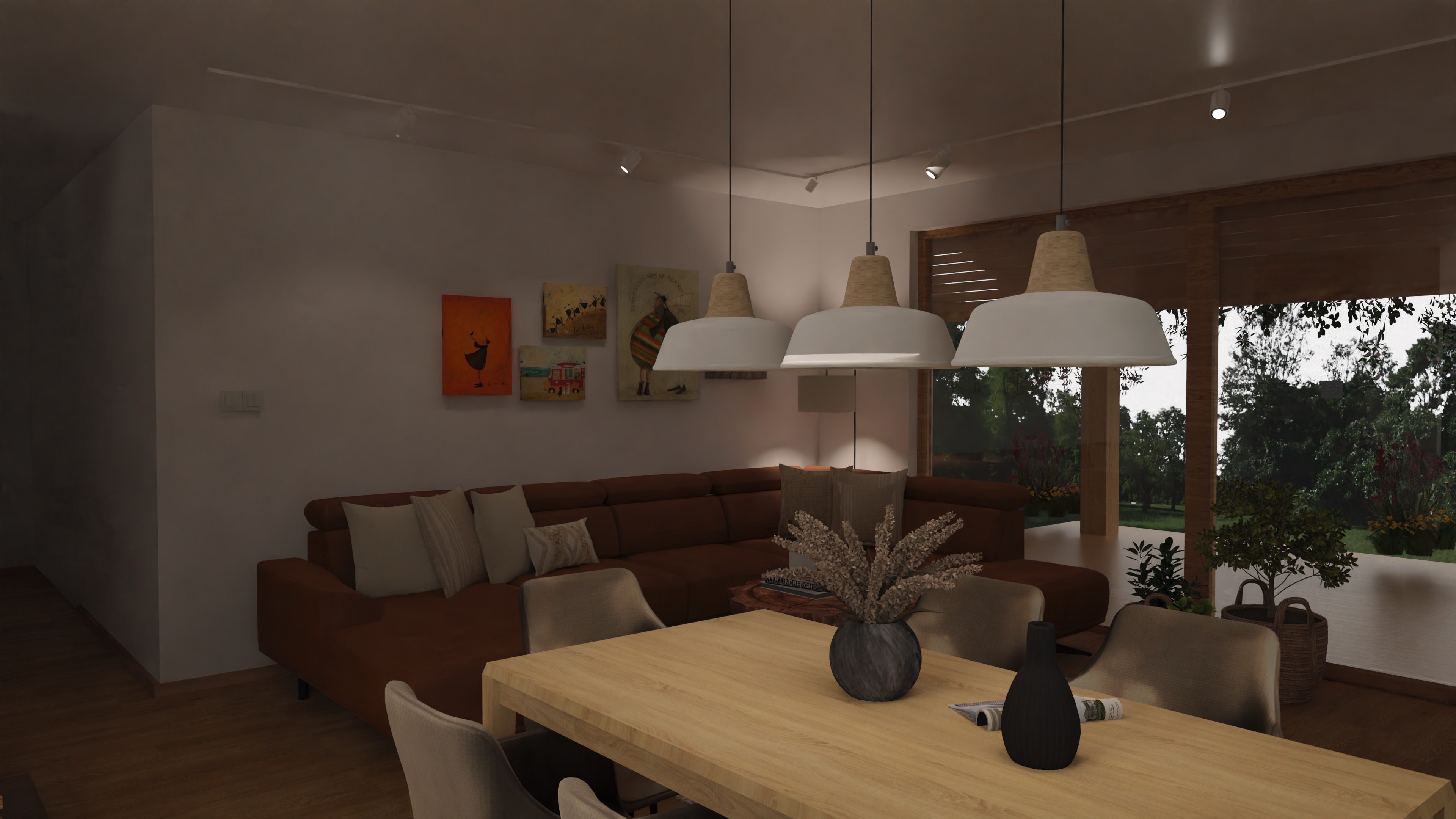 transform this picture into a realistic interior visualization with natural light keep the camera angle keep the original materials and textures make it an ultradetailed view with global illumination and photo based rendering materials add sunlight and contrast