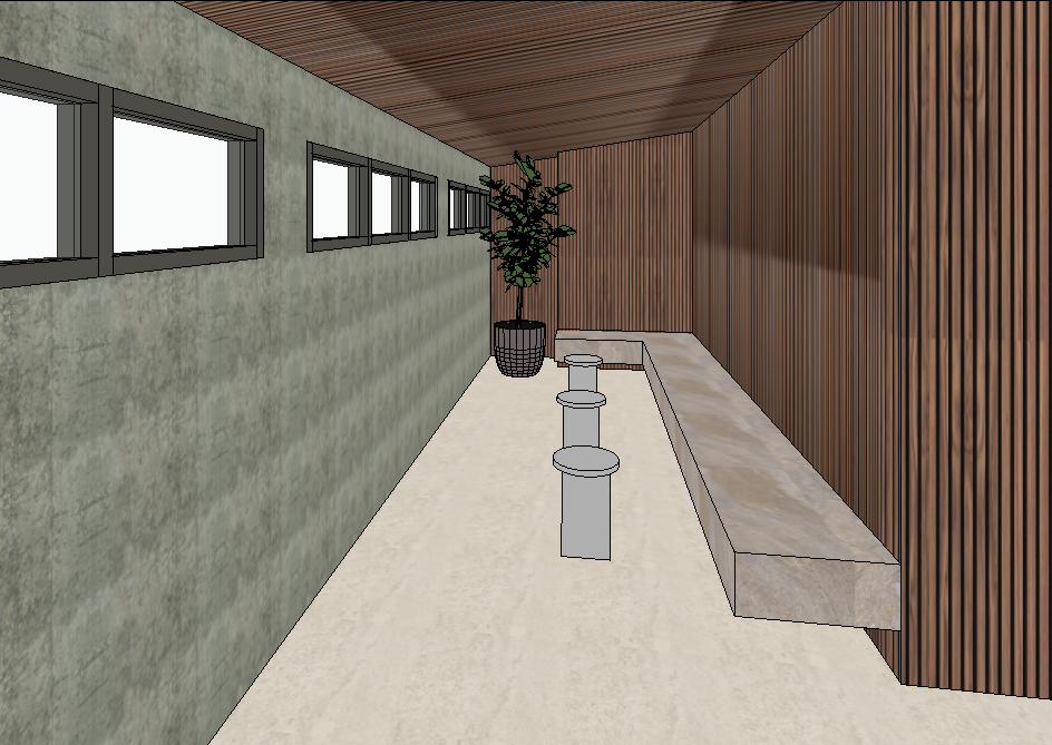 left wall to be colored in beige microcement texture wood a little lighter add non direct lighting from ceiling