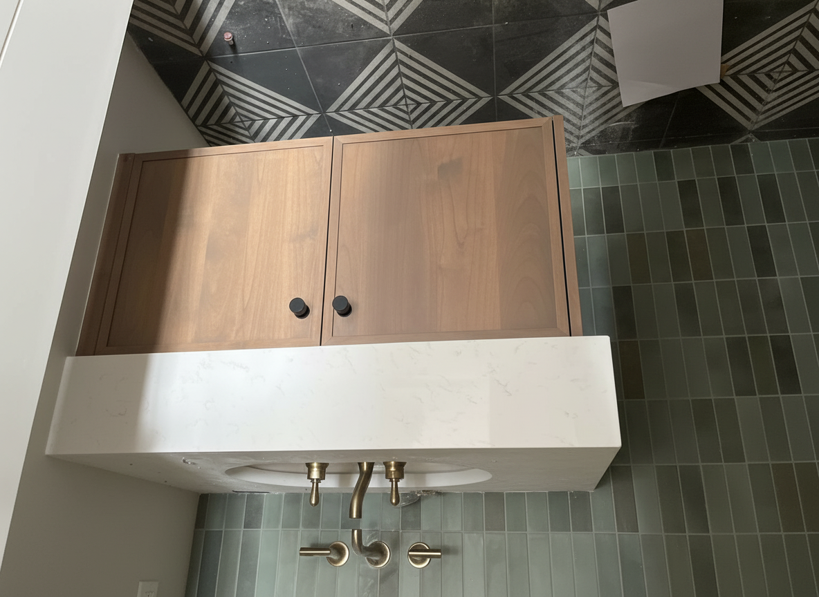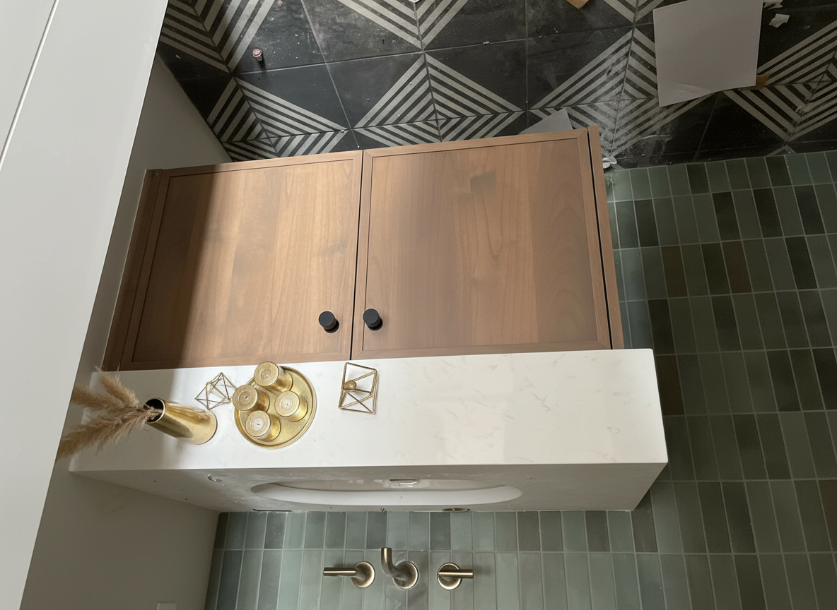 add new flooring remove everything on the countertop add more lighting for a bathroom