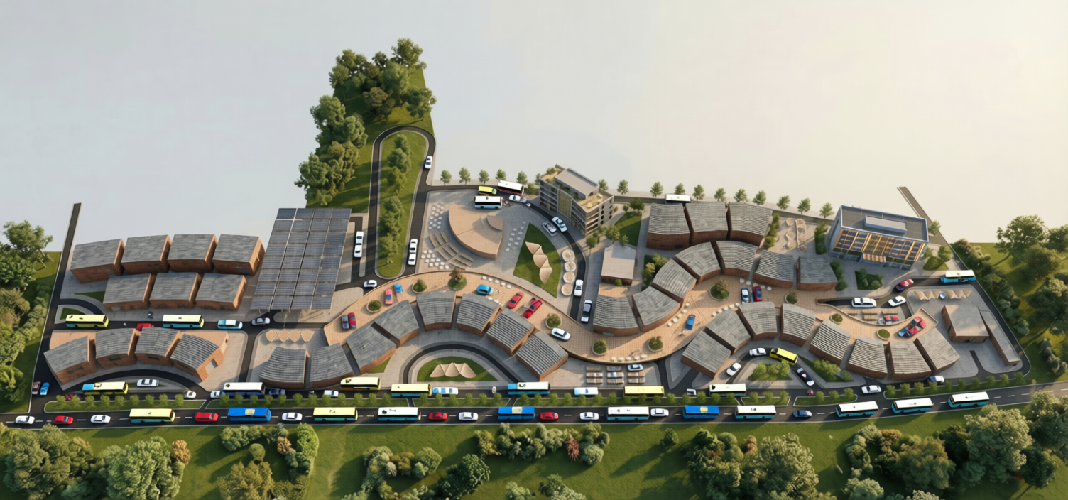 archsynth prompt sparse cars buses only on front main road mode edit insert base image uploaded cityscape global rule critical this is a pure insertion task the base image must remain pixel identical everywhere except for the newly inserted vehicles no other modifications are allowed vehicles cars insert cars only on dark gray asphalt roads do not place cars on lighter roads sidewalks plazas green areas or buildings all streets are double lane roads scatter cars sparingly to create a realistic light to moderate traffic feel cars must follow lane direction and curvature cars must match the scene s lighting shadows and perspective buses insert buses only on the front main road do not place buses on any other streets or roads limit the number of buses to a small realistic number e g 2 3 buses buses must be correctly scaled aligned to lanes and match lighting and shadows absolute hard constraints do not add remove modify or replace any existing pixels do not add or alter people buildings pavements landscaping water or any other object do not change lighting shadows colours materials or camera perspective do not stylize enhance or reinterpret the image buses must appear only on the front main road result the final image should be identical to the base image with sparse cars on all dark gray asphalt roads buses strictly confined to the front main road in small numbers no other changes anywhere else