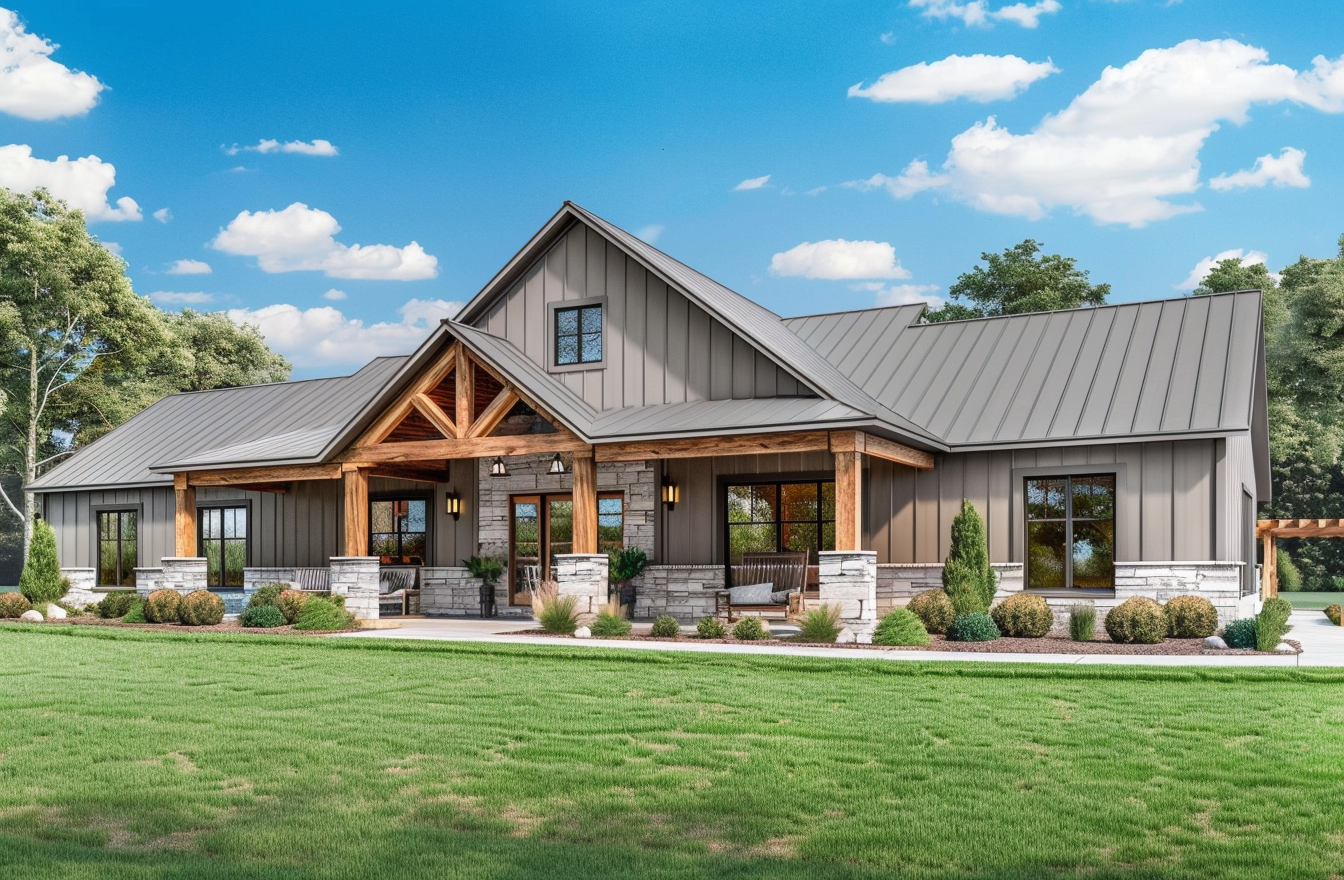 change the roof to black steel remove the pergola make the grass manicured and nice