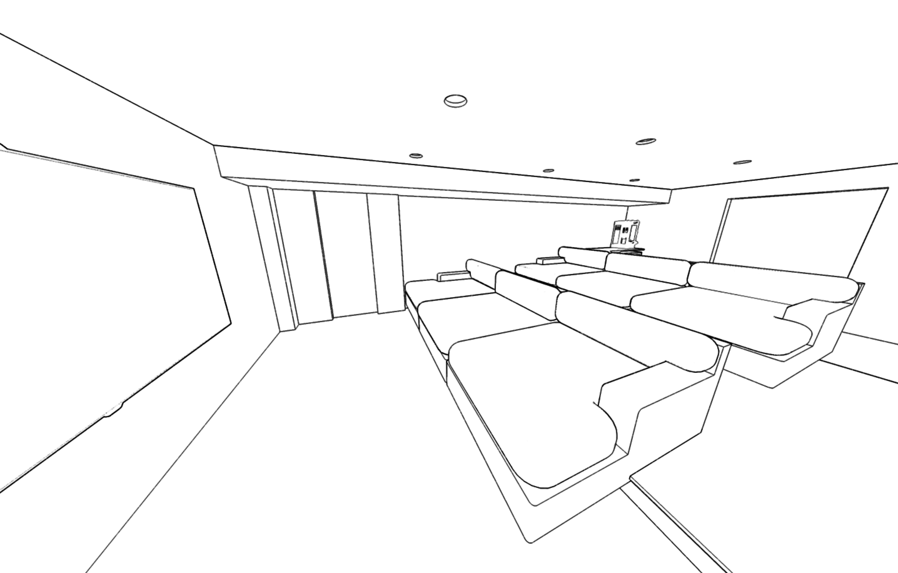 immersive home theater lounge bathed in warm amber tones walls and ceiling finished in rich glossy terracotta lacquer plush tiered seating with wide modular cushions upholstered in patterned orange fabric deep burnt orange and rust accent pillows low ambient wall sconces casting soft light cozy carpeted floor in matching tone large projection screen two oversized knit poufs on floor luxurious and enveloping atmosphere cinematic lighting mid century retro modern palette intimate proportions seamless acoustic panel integration high end minimalist audio setup mood of warmth and cocooning comfort photographed in architectural lighting style cinematic interior photography ultra realistic render