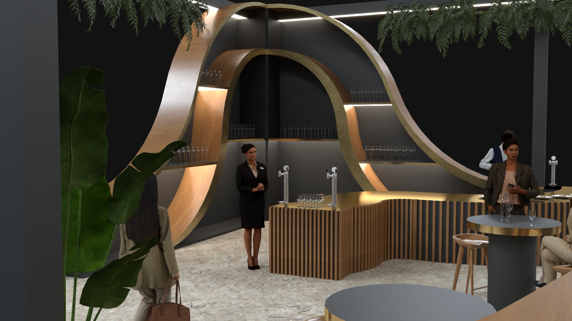 leave the set as it is i don t want you to change the elements just give them a more realistic feel i want you to put a culinary show in a sort of converted warehouse with people walking around and going about their lives