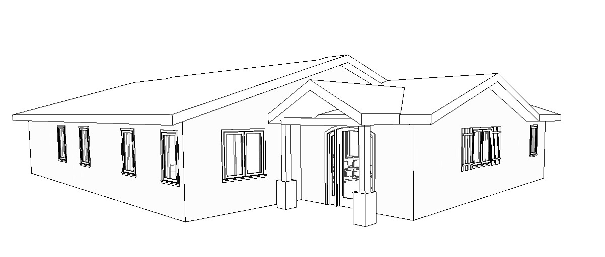 a country house with cream colored lap siding dark bronze windows gray asphalt shingle roofing dark brown posts with stone post bases and sage green fascia layered california native planting do not alter the structure