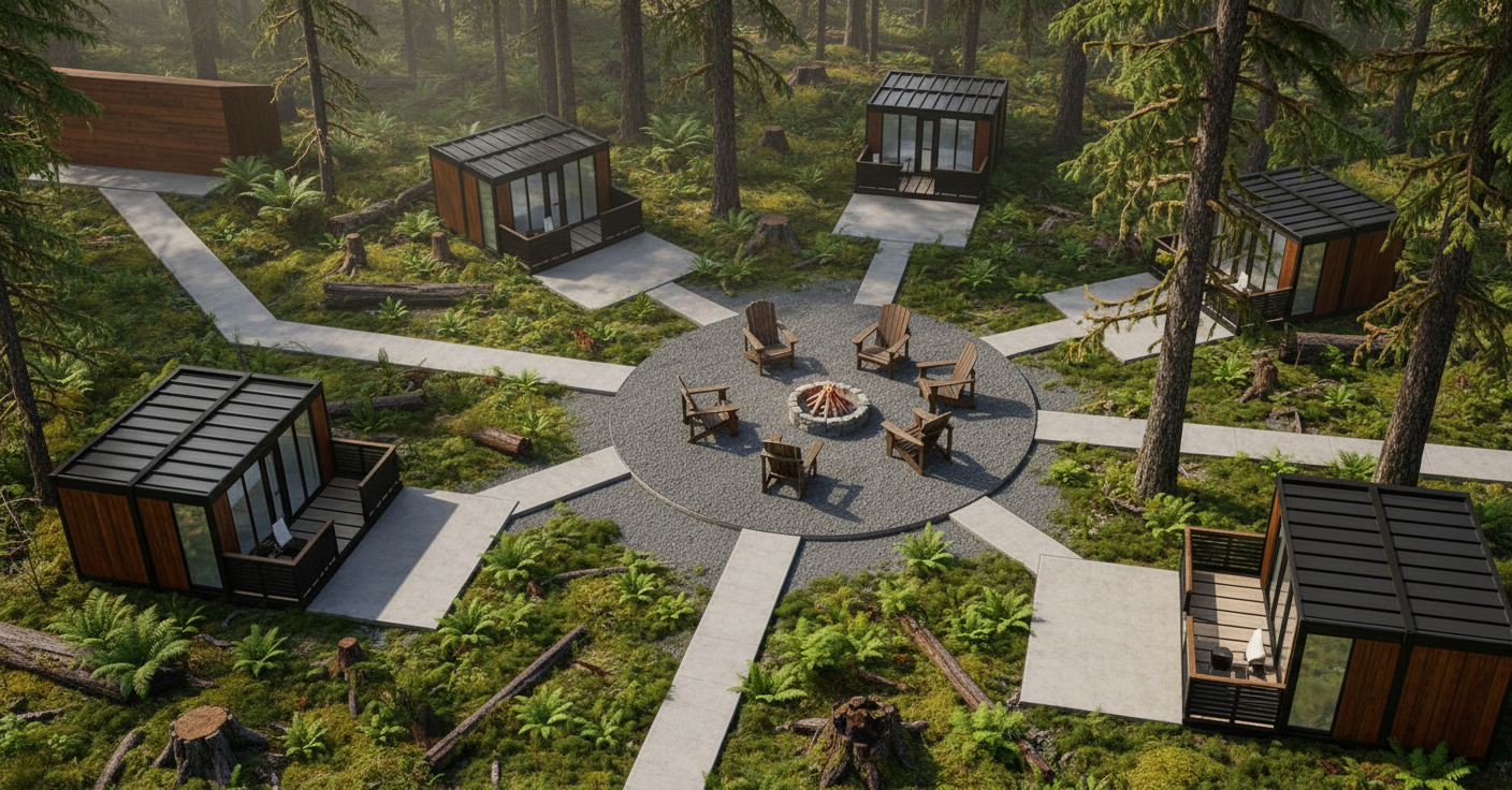 put a river in the background make all gray pathways rounded gravel pathways soften all pathway lines