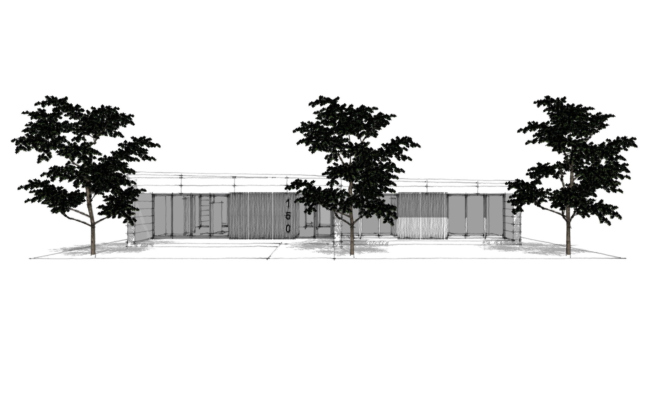 modernist exterior shot modern minimalist house with large windows sleek white facade and smooth gray stone accents the lush green grass is vibrant and well manicured leading to the patio tall elegant palm trees with rich green fronds and orange dates slightly sway in the breeze the atmosphere is serene and inviting under a clear bright blue sky architecture
