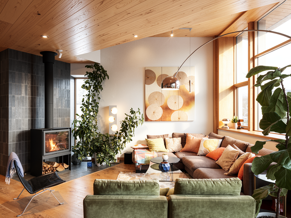 contemporary home office interior axonometric view strictly based on provided 3d model preserve exact geometry proportions and layout without adding removing or modifying any elements maintain original materials textures and colors exactly as shown beige walls light natural wood flooring and medium tone wood furniture do not reinterpret or enhance materials no gloss no extra reflections no surface variation lighting must remain completely neutral and flat with no added artificial lighting no dramatic shadows no ambient glow no led effects and no sunlight simulation use only uniform shadowless lighting as in a raw architectural model display furniture includes a linear wooden desk attached to the wall two upholstered chairs in light fabric upper floating shelves and a tall wooden storage unit keep all objects exactly as modeled including placement and scale window must remain in the same position and size outside the window include a subtle realistic view of a single tree as seen from a third floor apartment soft focus no strong lighting no sky dramatization camera angle axonometric isometric perspective clean and technical no perspective distortion overall style highly realistic but strictly faithful to the original model no artistic reinterpretation no added decor no extra objects no changes in composition