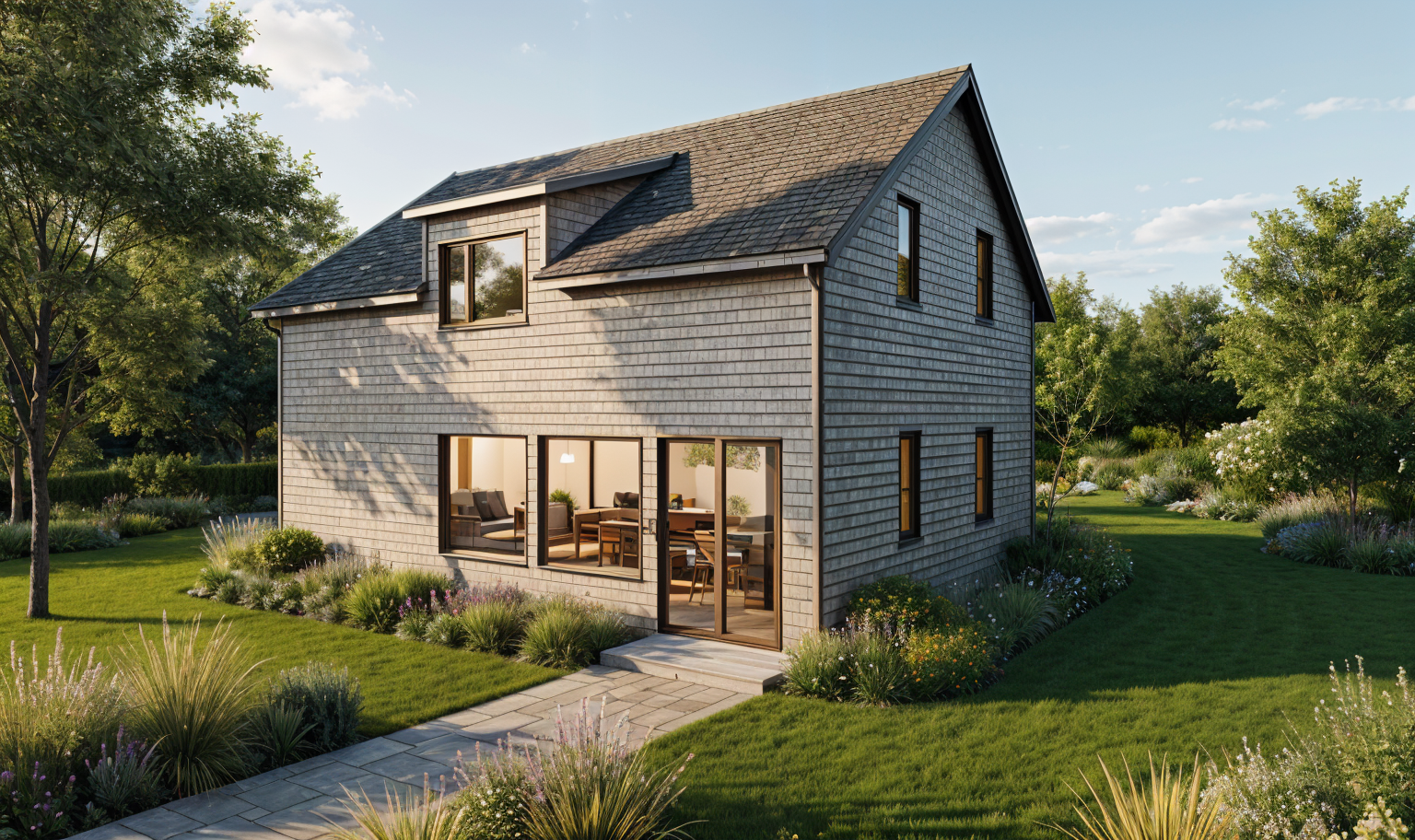 can you add a patio and maybe enhance the sky with some clouds and rays of sun hitting the villa