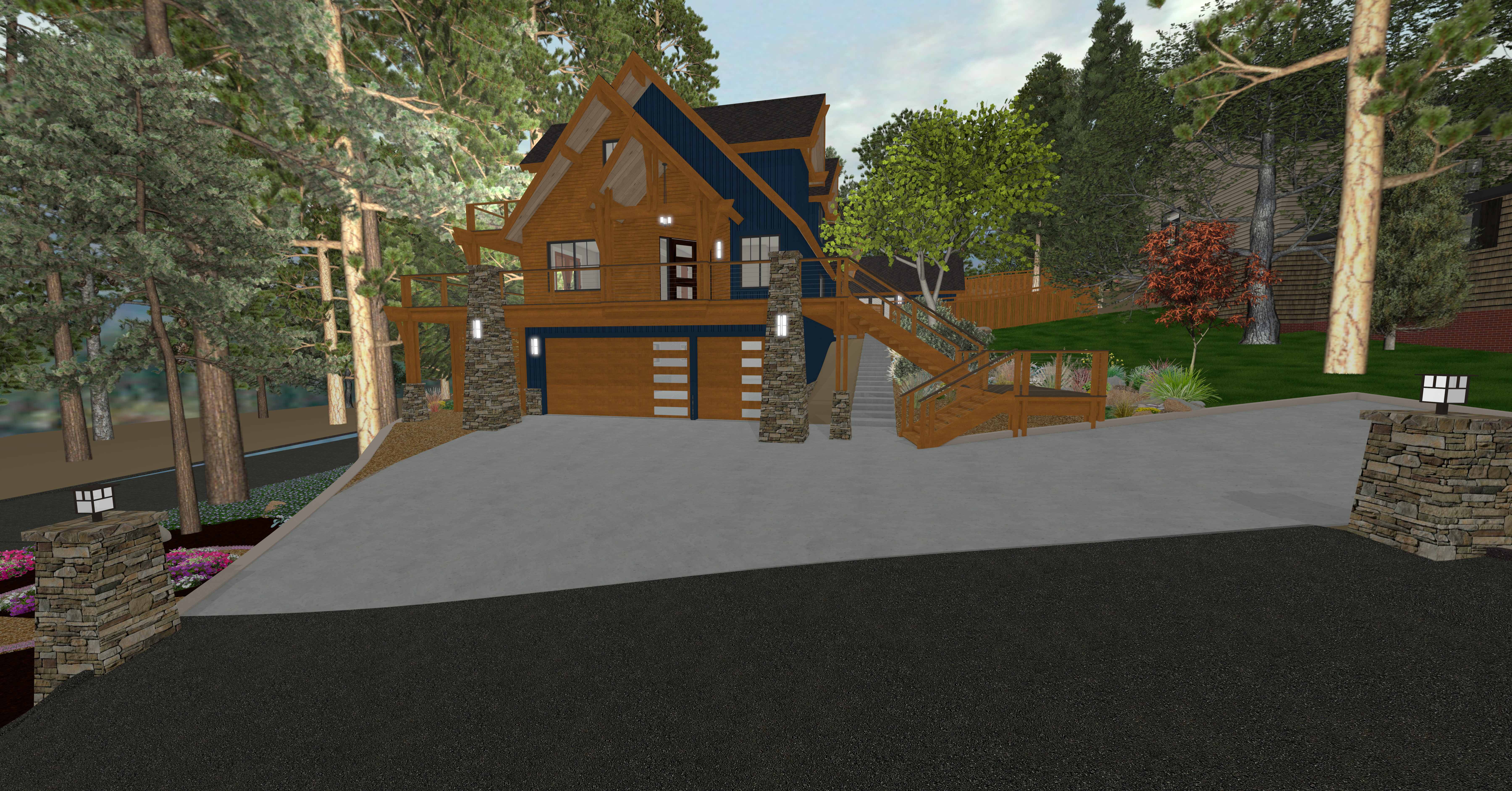 this contemporary mountain residence features navy blue batten and board siding complemented by natural cedar timber framing and horizontal siding accents black window frames and stone detailing further enhance its sophisticated architectural design