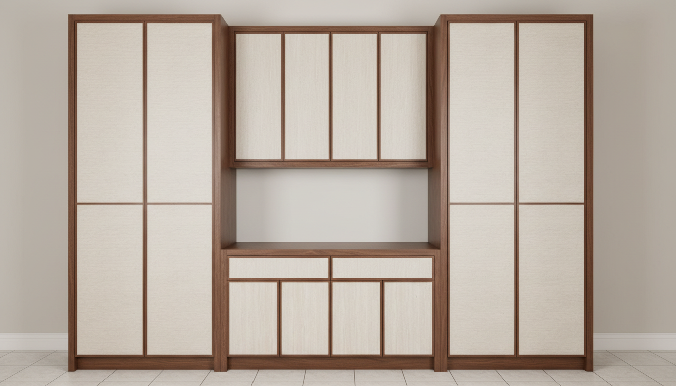 take the legs off this unit make it into below bench cupboards with doors that go all the way to the floor add a timber top in the same colour as the profile
