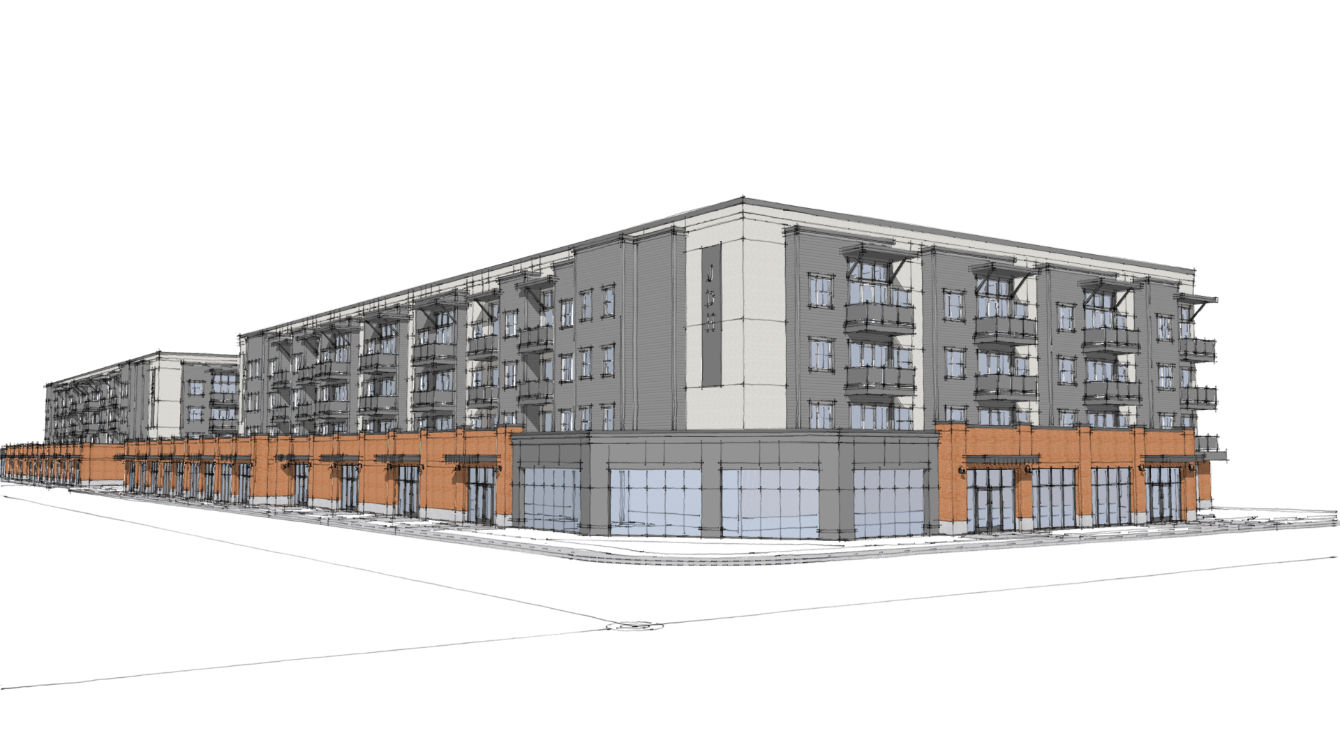 create a high quality photorealistic architectural rendering based on the uploaded sketchup image the project is an exterior building design render the scene with realistic natural lighting and professional architectural photography quality include accurate shadows subtle material textures and realistic reflections on all glazing match the perspective scale and proportions of the original sketchup view exactly use clear skies and natural daylight appropriate to the building s setting the final image should have clean sharp details and maintain a consistent aspect ratio of 16 9 for presentation purposes please add some street trees and park strip landscaping