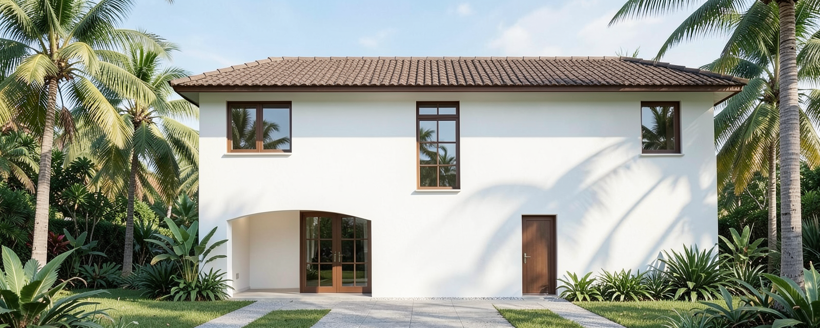 functionalism exterior shot florida urban setting with palm trees in the background explore the use of contrasts and colors light versus dark grays and wood textures and stone modern stone pavers in unique geometrical forms also create a lush tropical landscaping around the building to complement florida contemporary modern architecture the building is located on a urban street with cars traffic show sidewalk and street road architecture