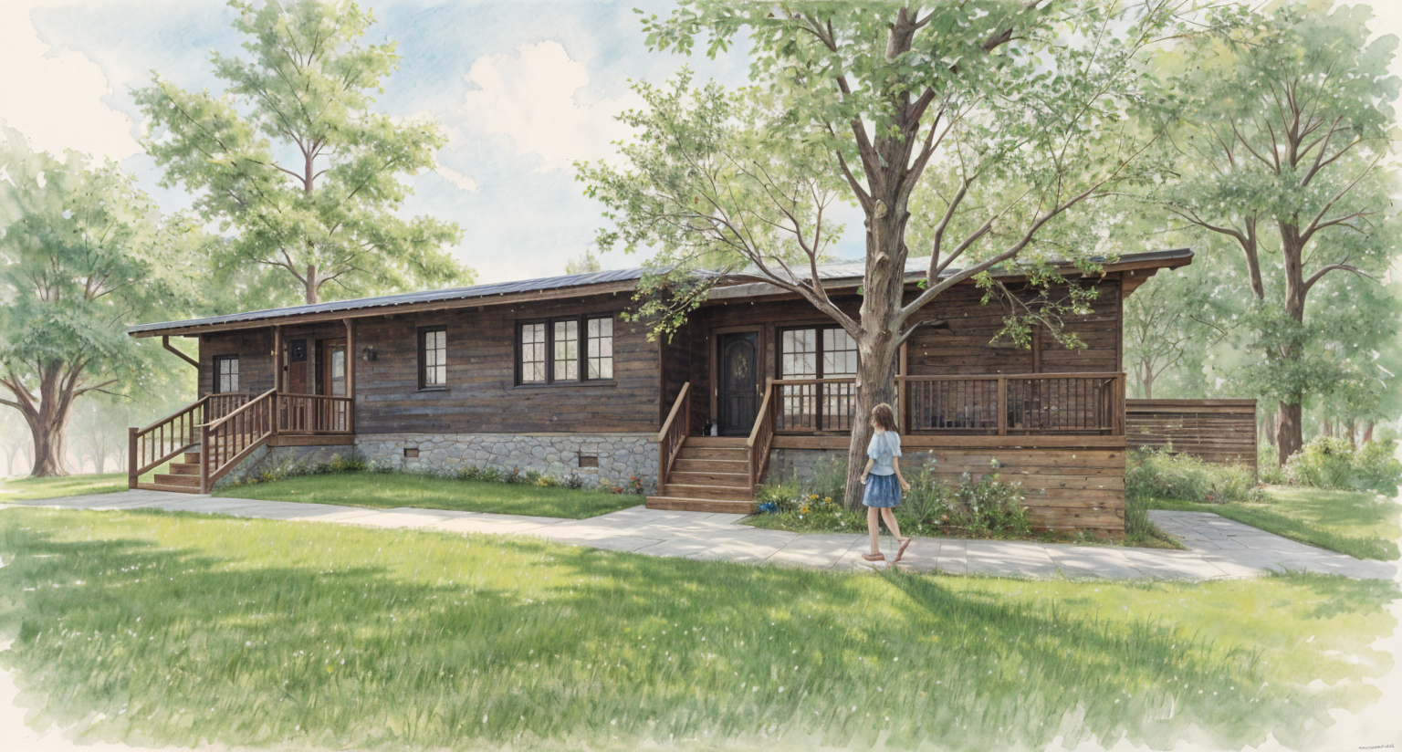 exterior shot neutral decor and stone backsplash lighting warm and cozy no sink below window add plants to countertop below window warm wood tone flooring architecture