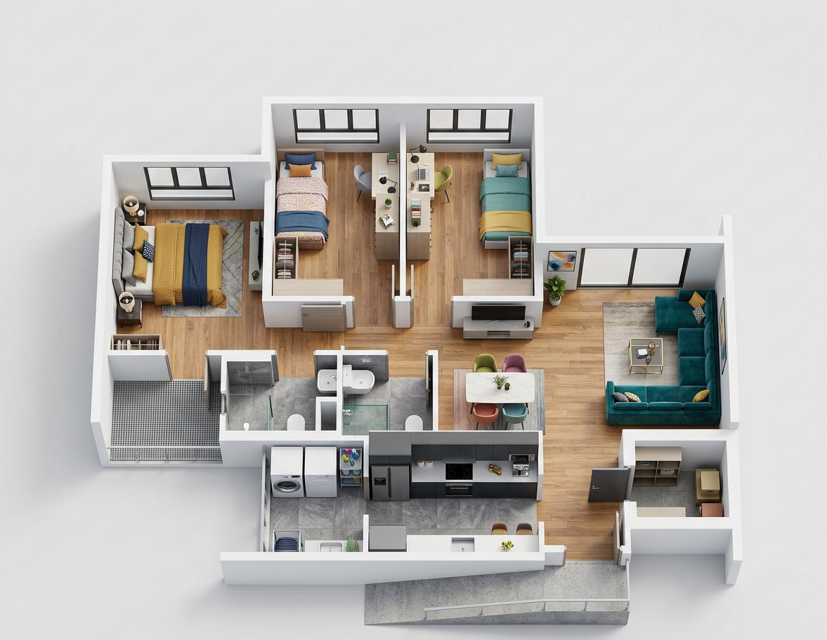 render me current 3 rd render as realistic