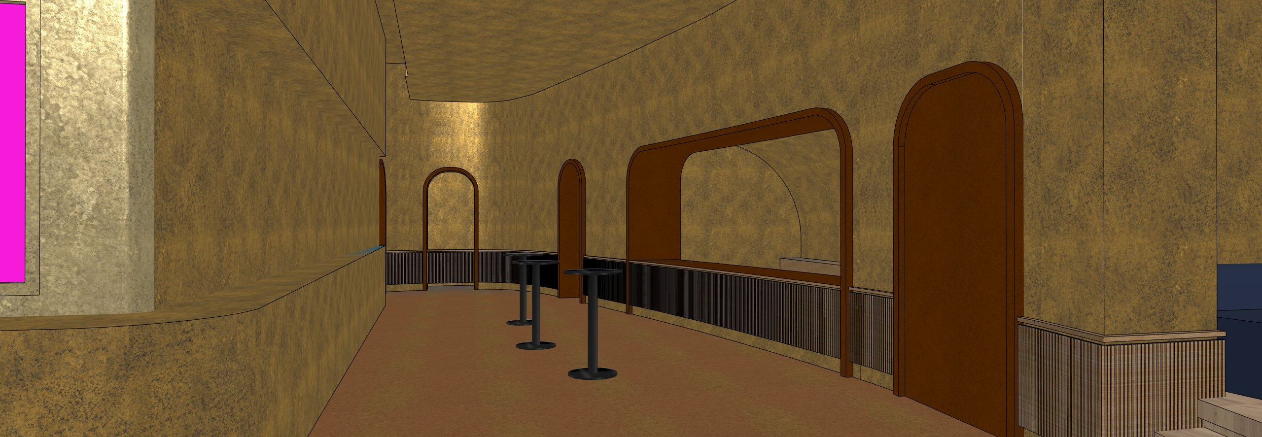 photorealistic render generated from the provided sketchup 3d image as a reference strictly respect the original geometry volumes proportions architecture and spatial layout visible in the source image the project represents a high end classy reception lounge located inside a football stadium the space must read as refined elegant and premium all wall floor and ceiling materials from the sketchup image must be strictly preserved special attention must be paid to the existing variety of textures and finishes do not modify reinterpret replace or stylize any of these materials do not recolor materials do not replace materials with gold metallic or golden textures all original materials visible in the sketchup image must remain unchanged the golden ambiance must be subtle and atmospheric resulting only from warm artificial lighting interacting with the existing materials never from material changes the floor texture must be preserved exactly as in the sketchup image do not change the floor into tiles stone marble or any other flooring type the floor must keep its original texture pattern scale and material identity strictly preserve the original material colors color tones coming from the sketchup image textures must be interpreted in a realistic high quality premium manner while keeping the exact original colors and material identities unchanged fully respect the color coding system present in the reference image there is no natural light in this render there is no sunlight no daylight no sky light and no light coming from outside the space the environment must read as a pure interior space with zero exterior illumination or exterior influence of any kind all lighting must be 100 artificial any openings windows or colored shapes visible in the reference image must not emit light must not glow and must not suggest any exterior brightness or exterior environment artificial lighting must be warm soft and indirect it should enhance volumes materials and architectural depth without overexposure the lighting must create a refined elegant high end lounge atmosphere the warm and golden feeling must come exclusively from artificial lighting color temperature and light reflections never from recoloring materials or introducing exterior light all furniture visible in the sketchup image must be kept exactly as is no furniture decorative objects lighting fixtures screens or architectural elements may be added removed or modified except where explicitly stated below color coded areas in the native image are strict functional placeholders and must be interpreted exactly as follows with no alternative interpretation only the orange colored shapes must be replaced by mirrors this includes rectangular curved concave or any other orange colored geometry visible in the reference image no other surfaces may be changed into mirrors or reflective materials any green colored shape represents a television screen and must be replaced exclusively by a realistic tv displaying a football match of olympique de marseille om archsynth must take no artistic freedom beyond what is explicitly described in this prompt do not introduce implied elements decorative reinterpretations material substitutions or stylistic changes no people unless explicitly requested elsewhere the final render must be clean photorealistic elegant strictly controlled and clearly convey the atmosphere of a premium interior lounge lit exclusively by artificial lighting with materials faithfully preserved