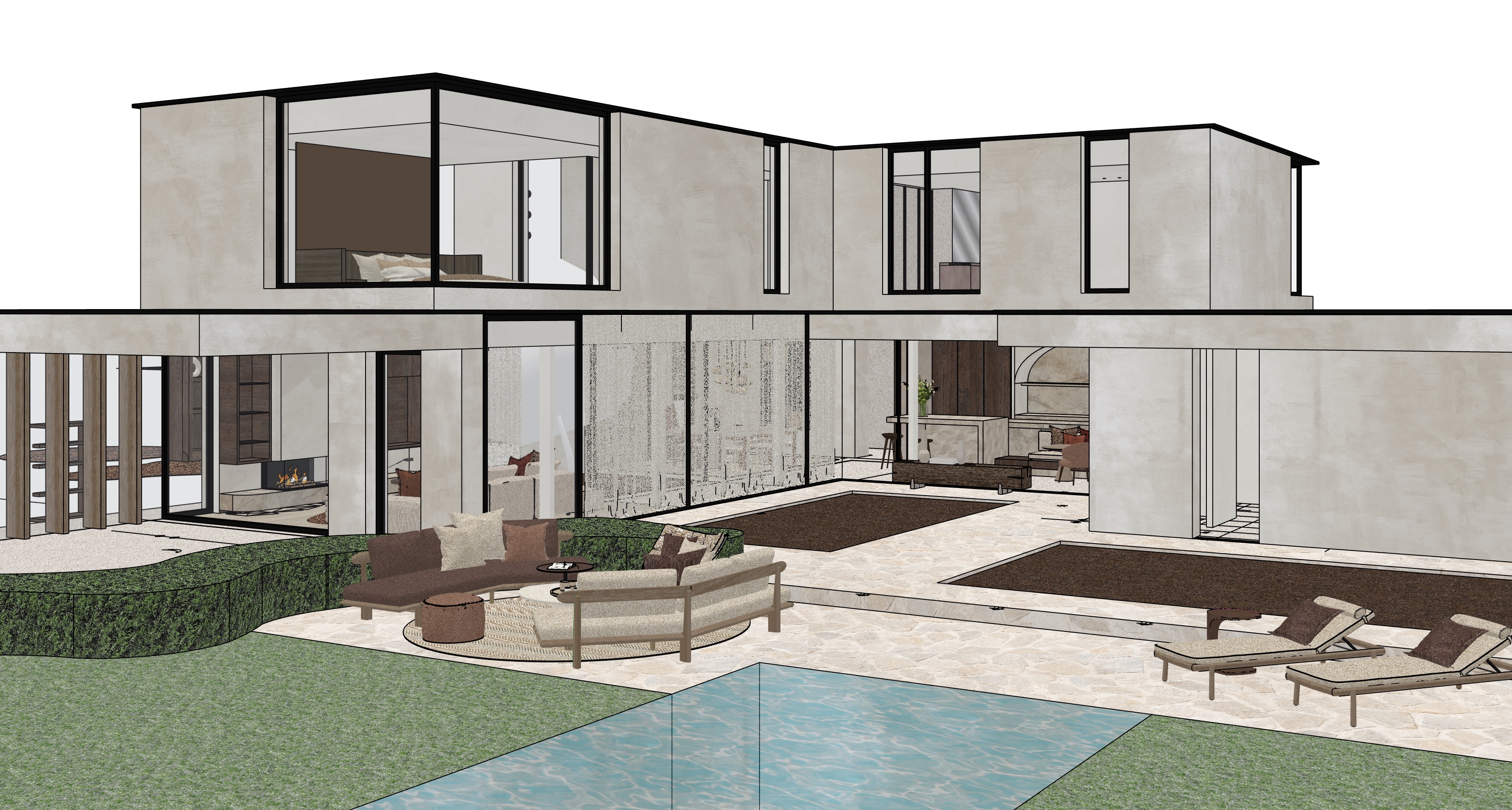 ultra photorealistic architectural outdoor render preserve exact camera angle composition scale and layout improve lighting material realism and depth only high end contemporary interior soft natural daylight mixed with warm artificial lighting accurate materials refined textures no exaggeration editorial quality calm and elegant atmosphere