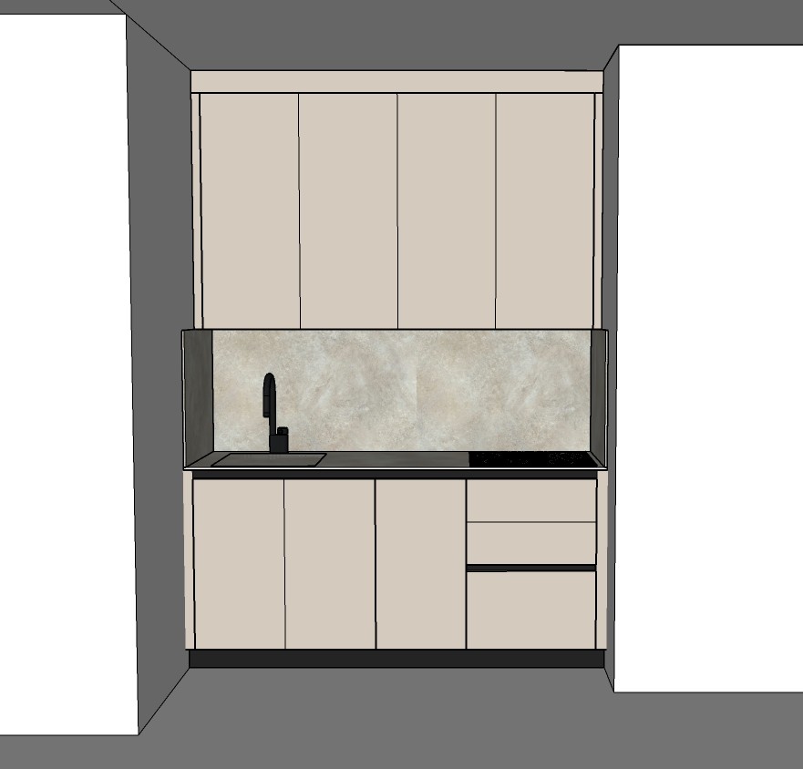 1 render this kitchen very well add a led under the upper cabinets at the right there is a w