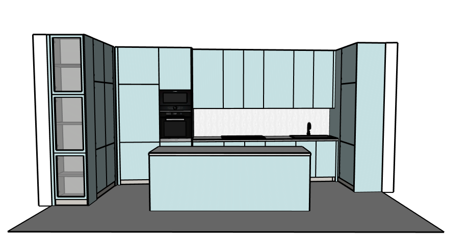 agt super matt light cream 398 for the upper shallow cabinets above cooktop sink etc agt hg galaxy cream 678 for all the rest of the cabinets kitchen island kronospan white andromeda k217 gm worktops kitchen island sides and back white gola system instead of handles concealed lighting under the upper cabinets inside the glass cabinet as shown in already in you picture