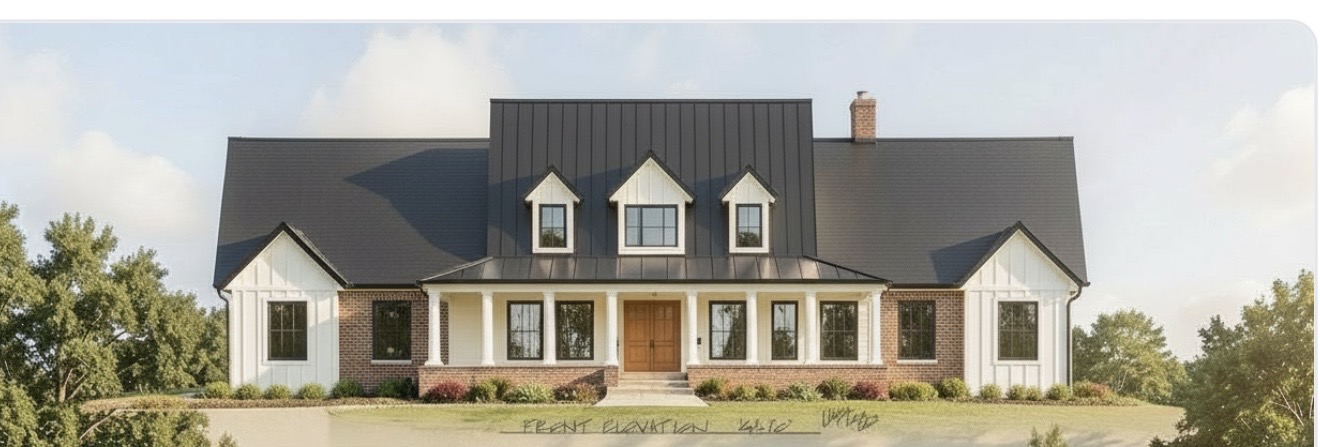 change the brick color to a creamy white also change the front two gables to a grey scheme of rock