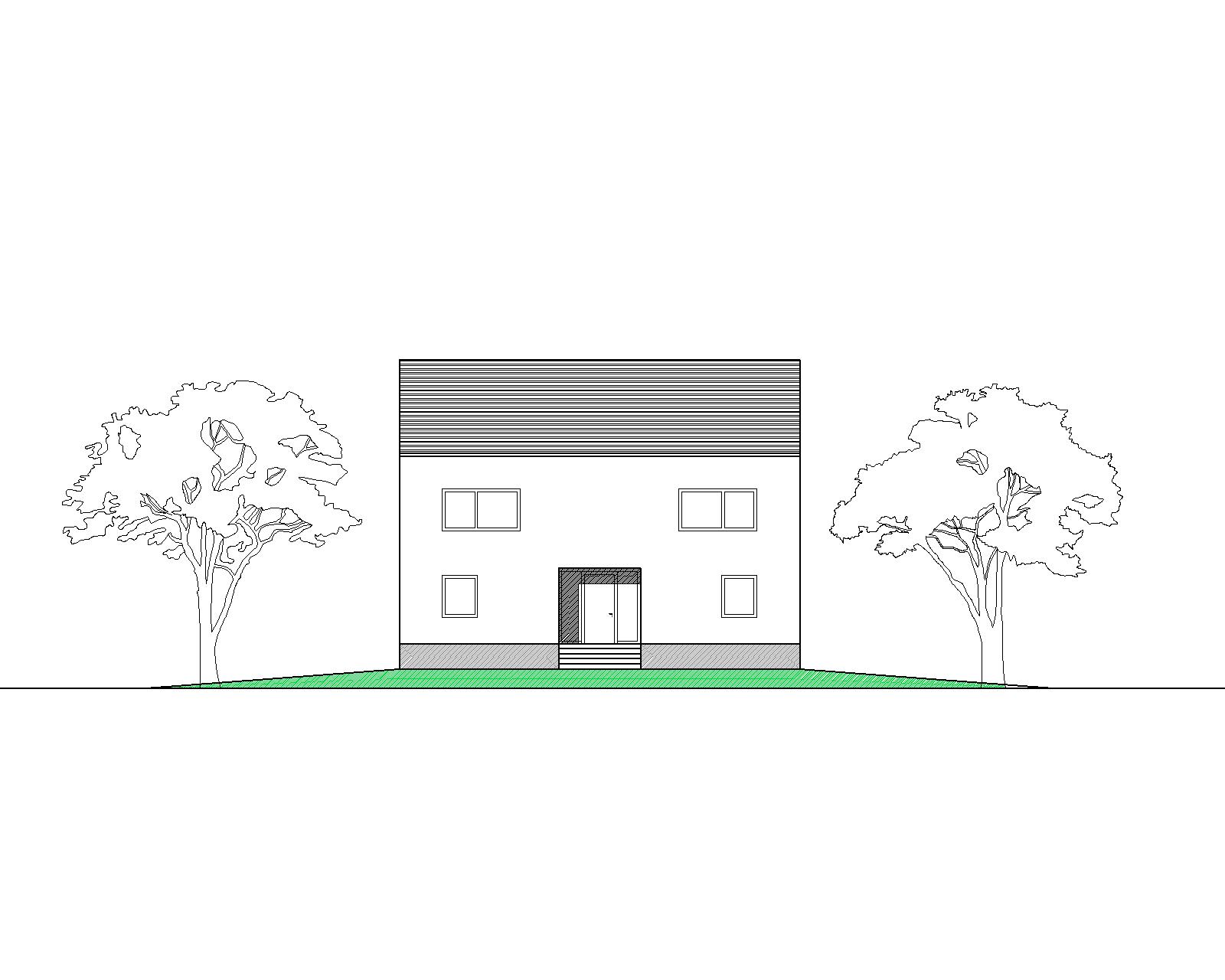 exterior shot white facade summer vibe trees grass country side gable roof architecture