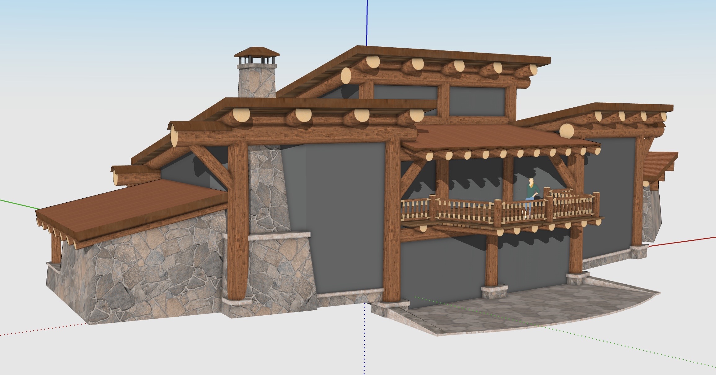 evening mountains flagstone out front lot of landscaping log lodge post and beam lots of glass exterior lighting mountain modern