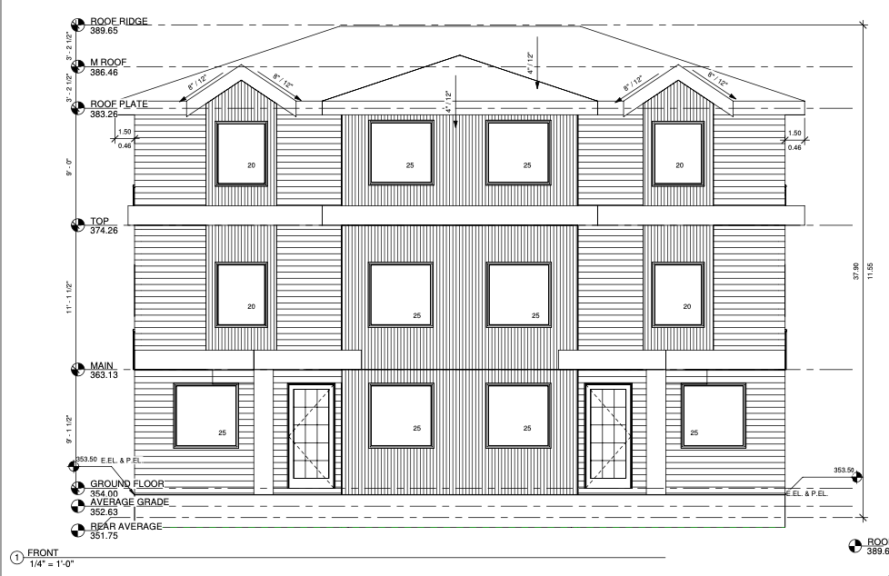 black roof white paint on the left and right side of house middle portion of house to be vertical black metal siding doors to be black color windows black trims to be black each box window to also be vertical black metal siding