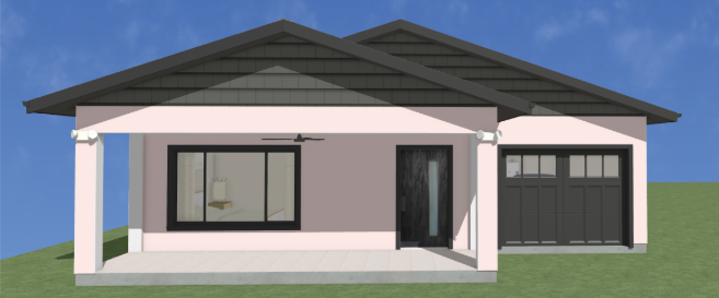 modernist exterior shot pale pink exterior black shingles and roof greenery in lawn architecture