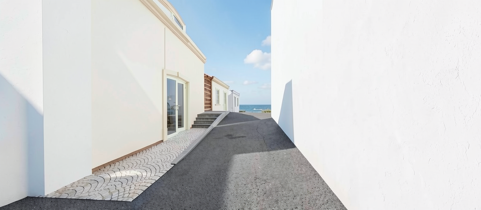 render photorealistic keeping finishes and structure the same view is of field with mountains is very far off distance