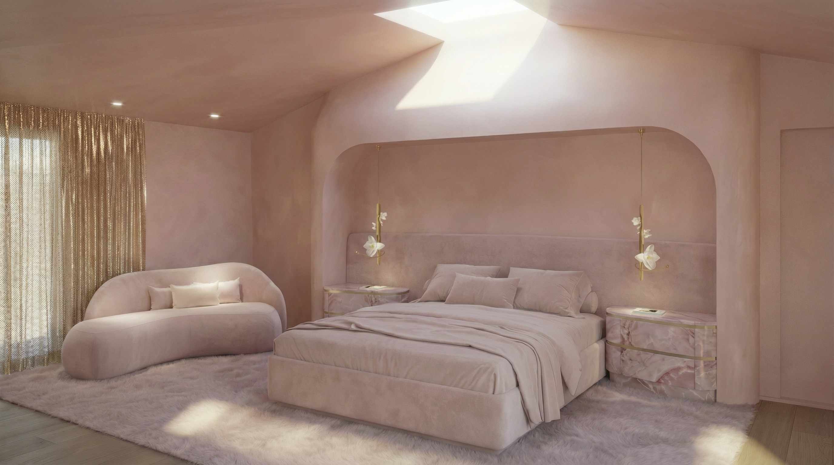 render the metallic mesh curtain less reflective more delicate champagne tone do not change anything else