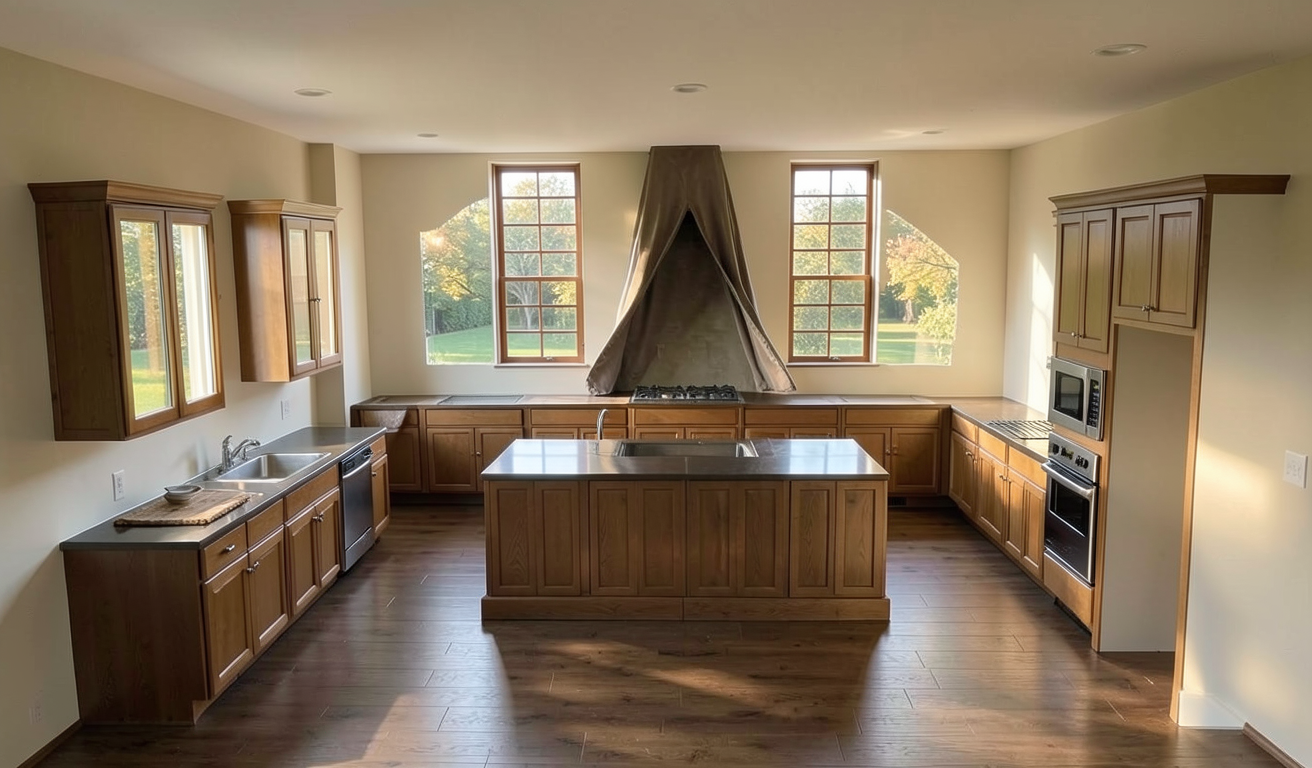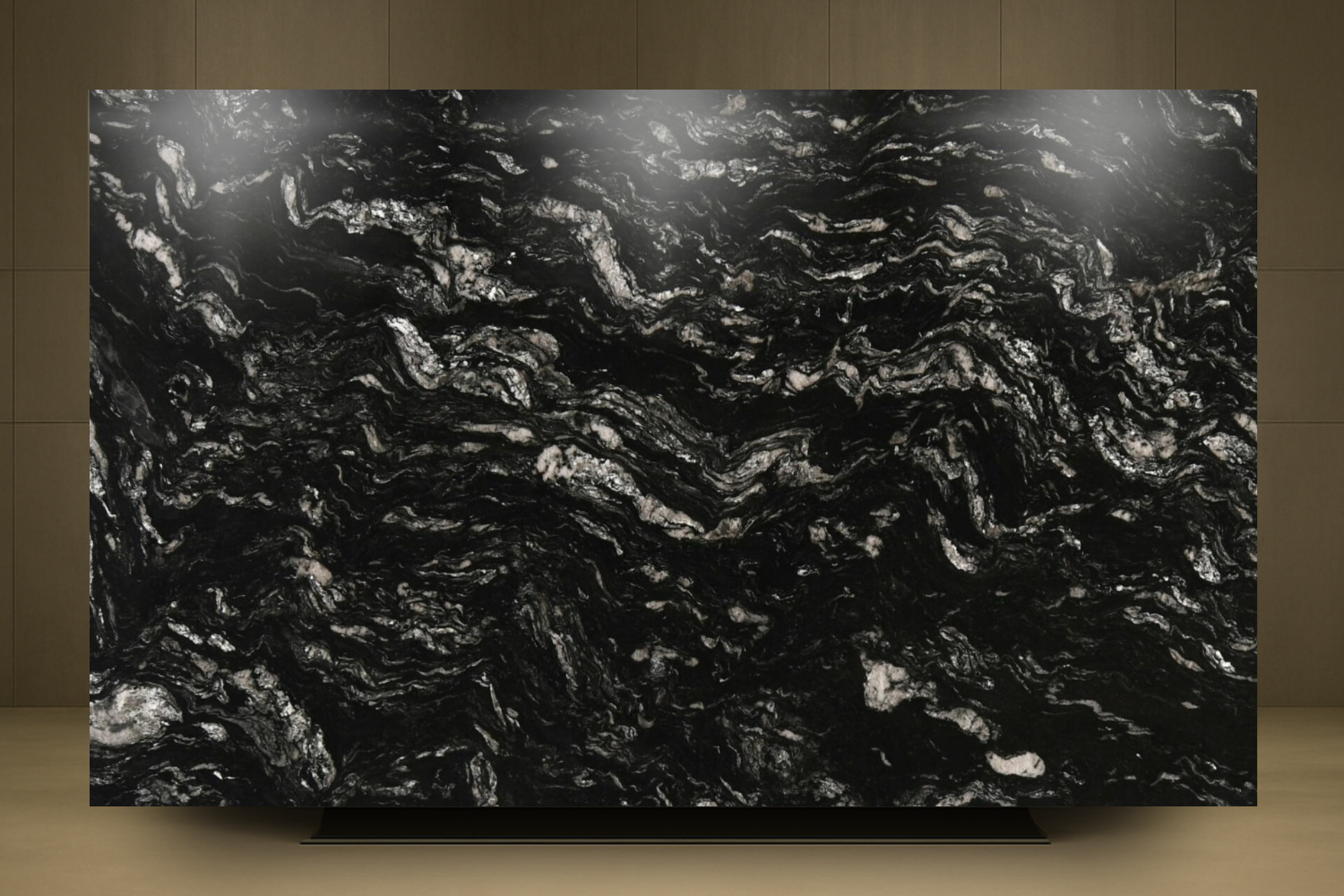 a kitchen rendering with this granite as the countertop and backsplash focus on the island area apply high end fixtures for an editorial magazine advertisement