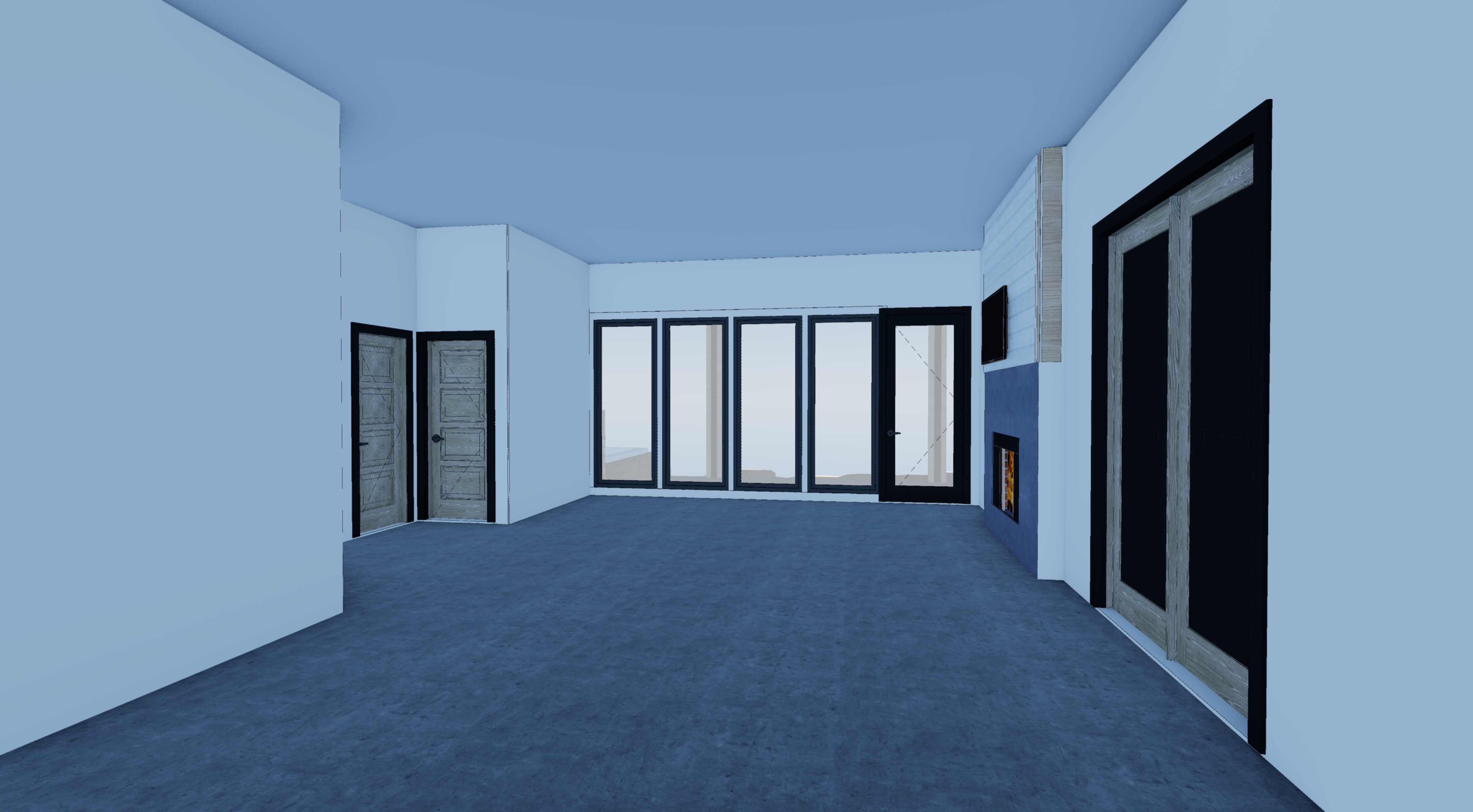 luxury mountain modern exercise room with equipment yoga mats yoga ball dark stone fireplace with tile surround add small house plants door on the right leads to the family room not outside far windows look out to snowy pine forest