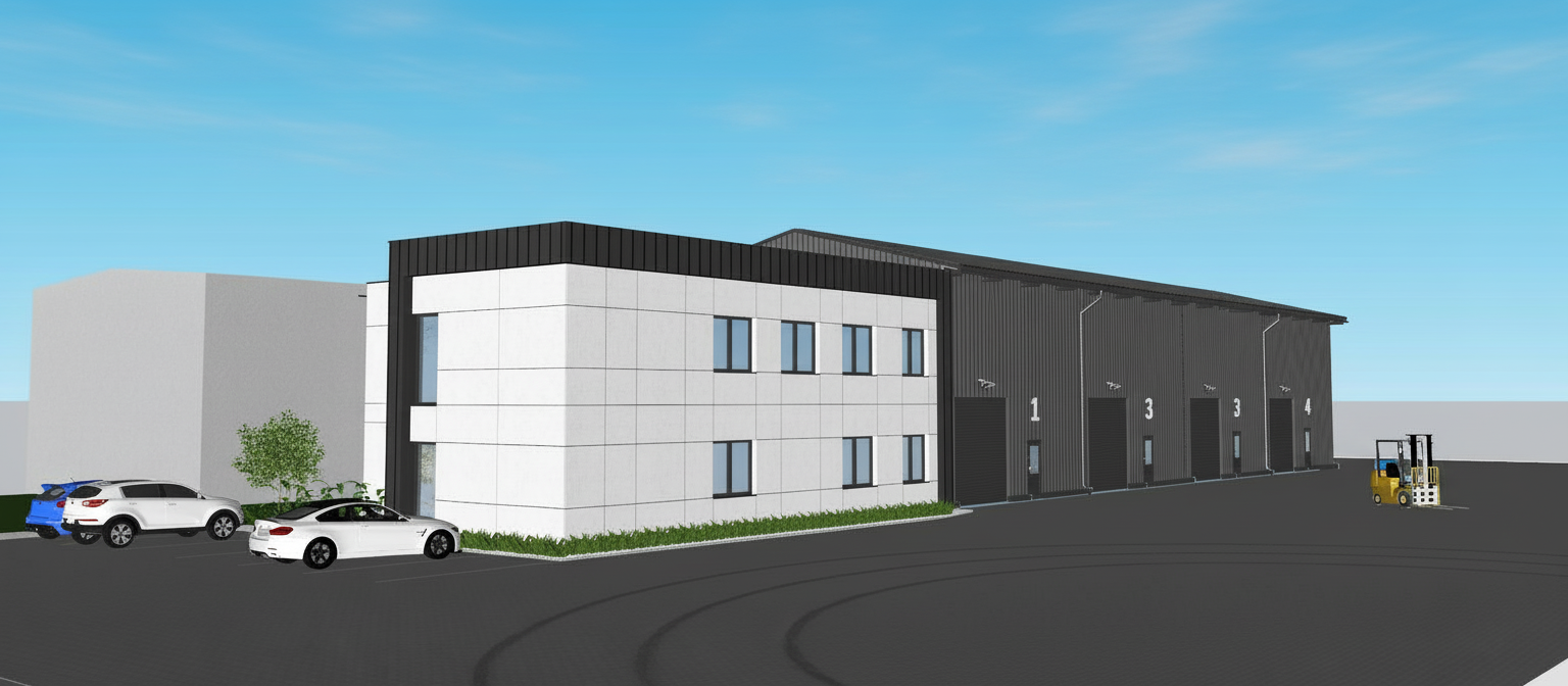 remove the water fountain and make the house light blue gray make the view off centered add grass flowers and sky and a driveway and walkway to the front door from the driveway