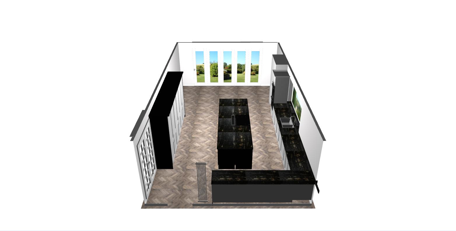 add lighting and seating to room at bottom near the patio doors