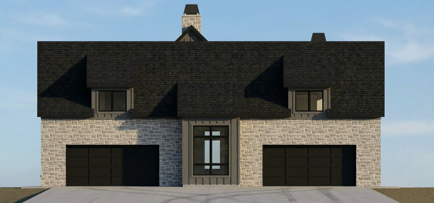 make the stone a light grey with light mortar and add in a driveway to the front approach and make the roof on the dormers a metal standing seam roof in black