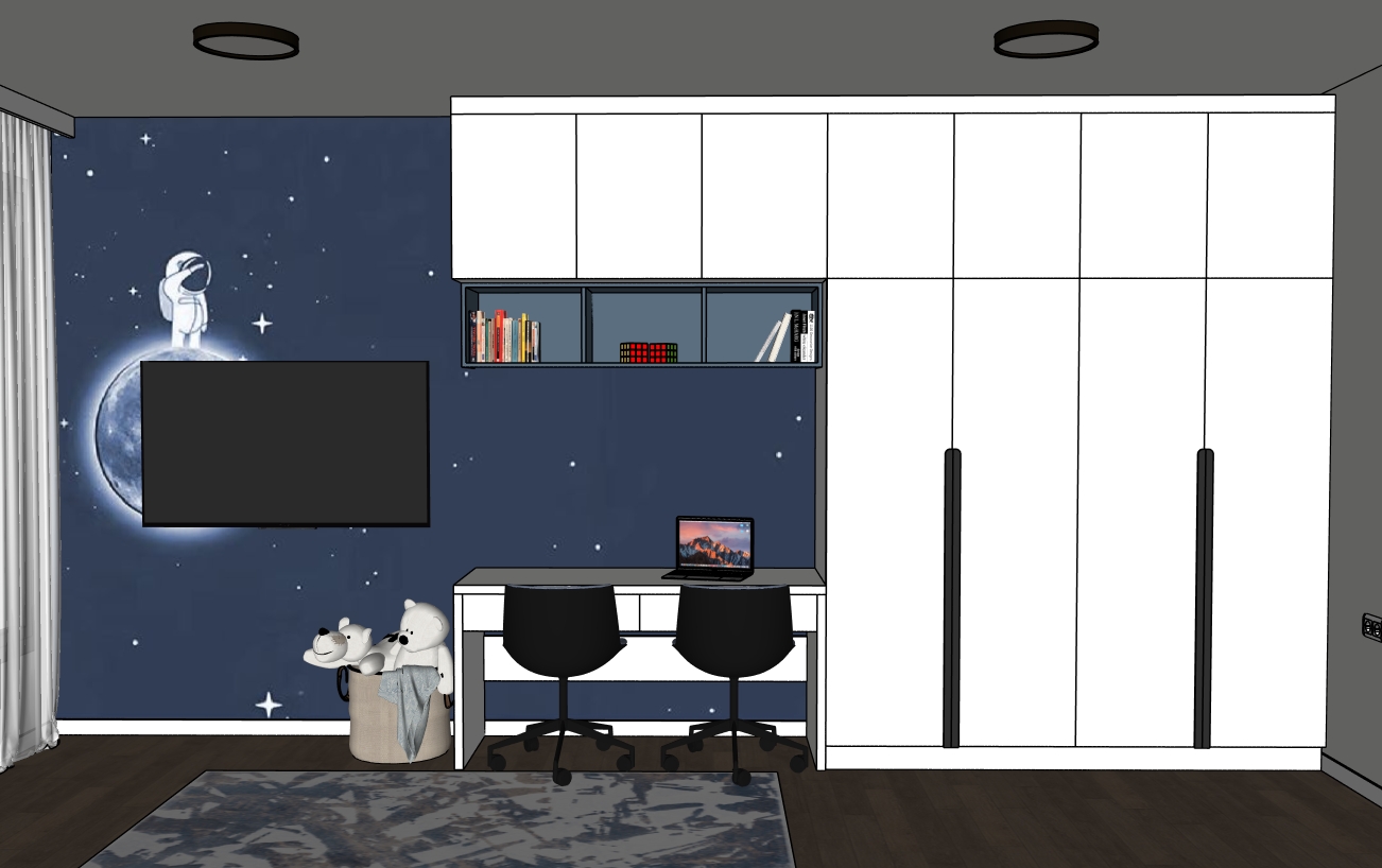 rucke na ormaru si crne otvorene police su antracit plave maska na vrhu ormara je u boji kao ormar