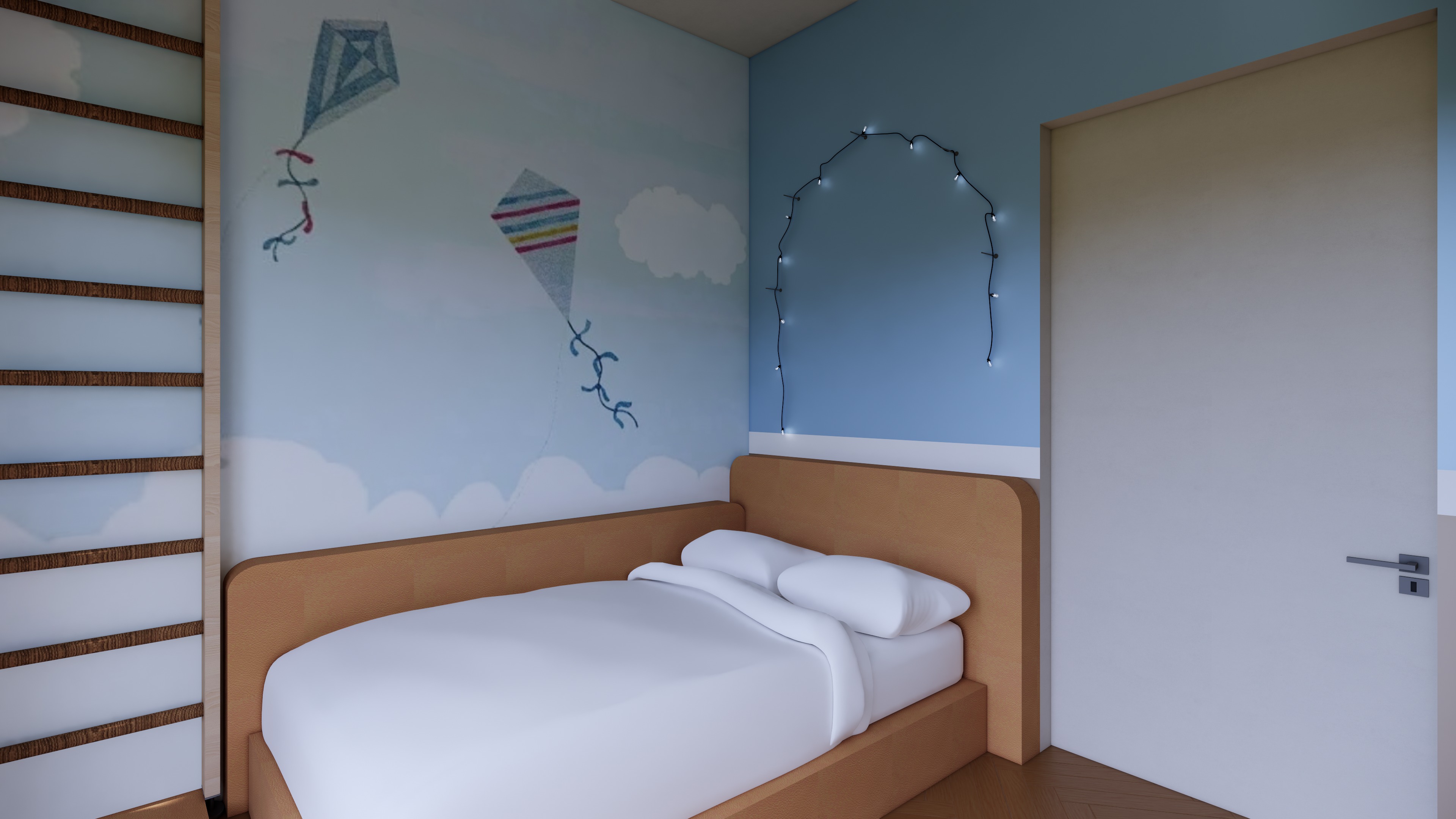 keep the exact same layout geometry proportions and camera angle do not change any colors materials shapes or add any new objects inside the room enhance realism only improve material textures with subtle imperfections refine shadows and add natural global illumination increase detail and depth while preserving the original design lighting adjustment make the room brighter as if illuminated by a central ceiling light source simulate soft diffused overhead lighting without adding or showing any light fixture do not introduce any visible lamps pendants or light objectsexterior view replace the window background with a realistic backyard garden scene ensure the exterior lighting matches the interior lighting direction and intensity keep the view soft slightly out of focus and not distracting do not change the window shape size or position keep lighting natural evenly distributed and realistic avoid harsh shadows and avoid overexposure e atmosphere just cleaner brighter and more realistic do not redesign anything