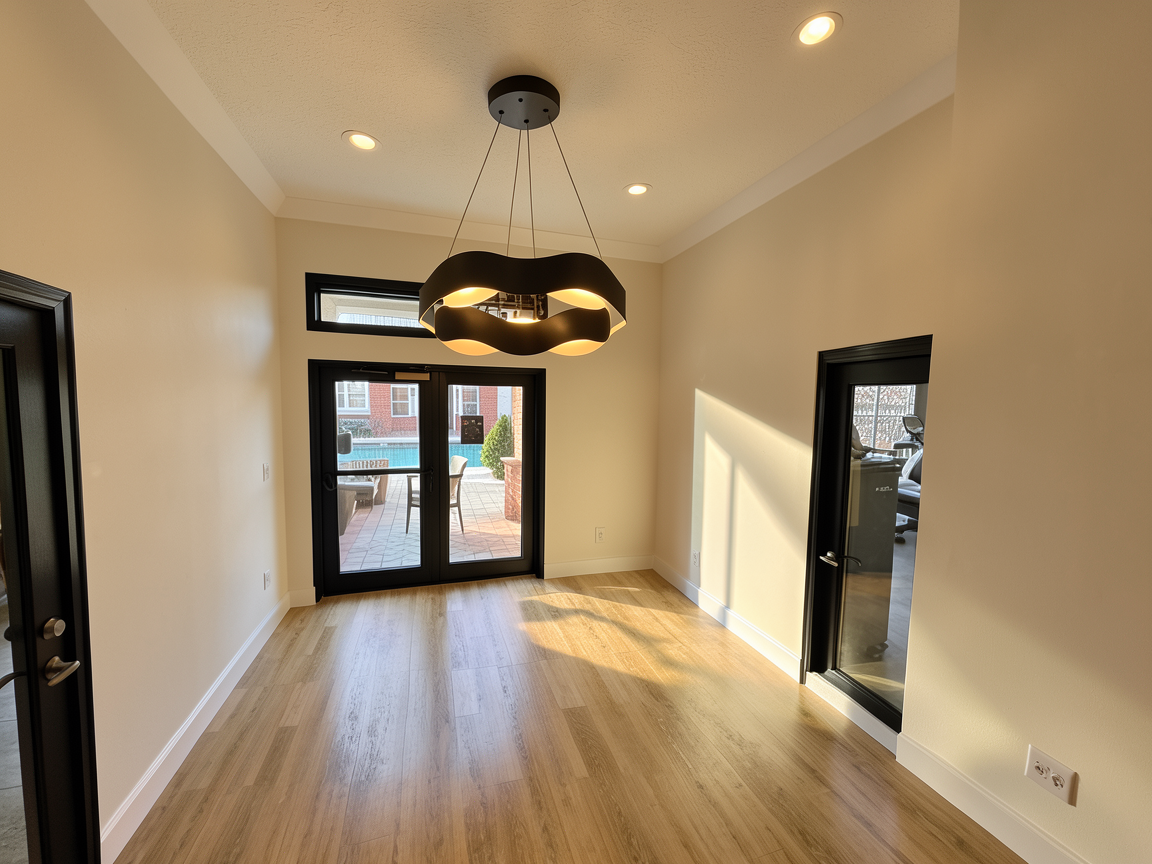 there are 3 pendant lights over the island remove the center one completely and then evenly space out the two over the island there should only be two pendants
