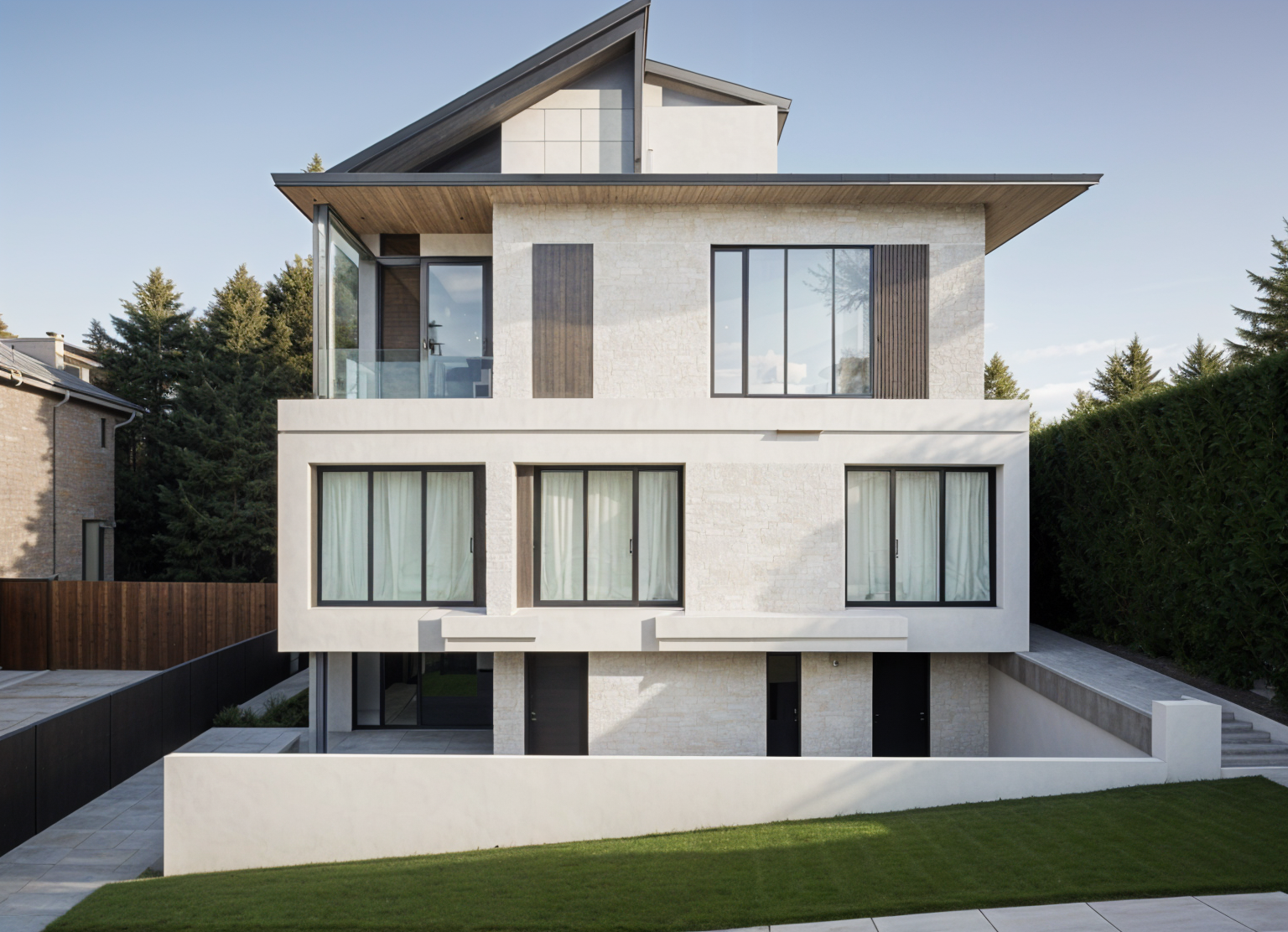 modernist exterior shot dont change the design villa add street add wood and stone architecture