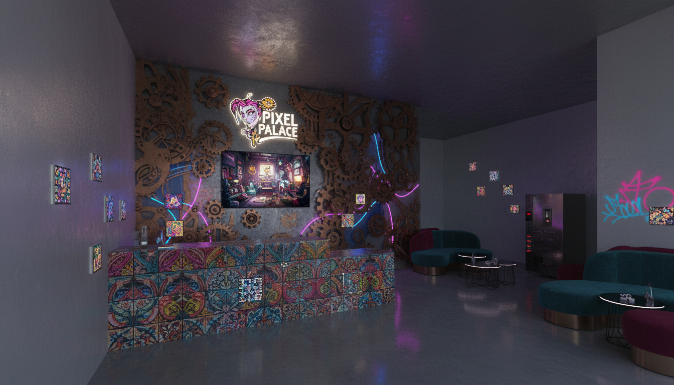 make realistic add decor add someone walking around make artwork more muted keep all furniture the same