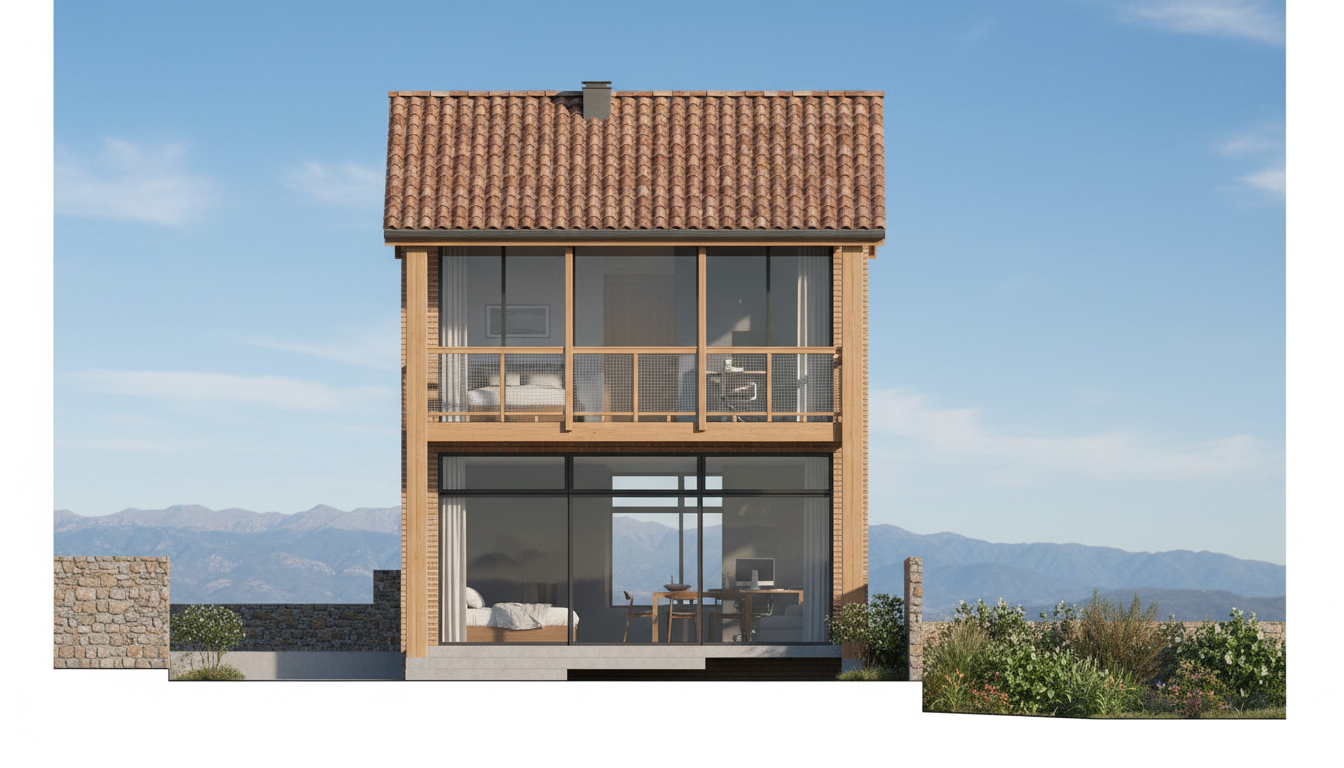 convert this floor plan into a realistic isometric 3d view of a full house show the space from an elevated angle with furniture walls and details visible use the same furniture as shows on the plan do not change the orientation of the floorplan