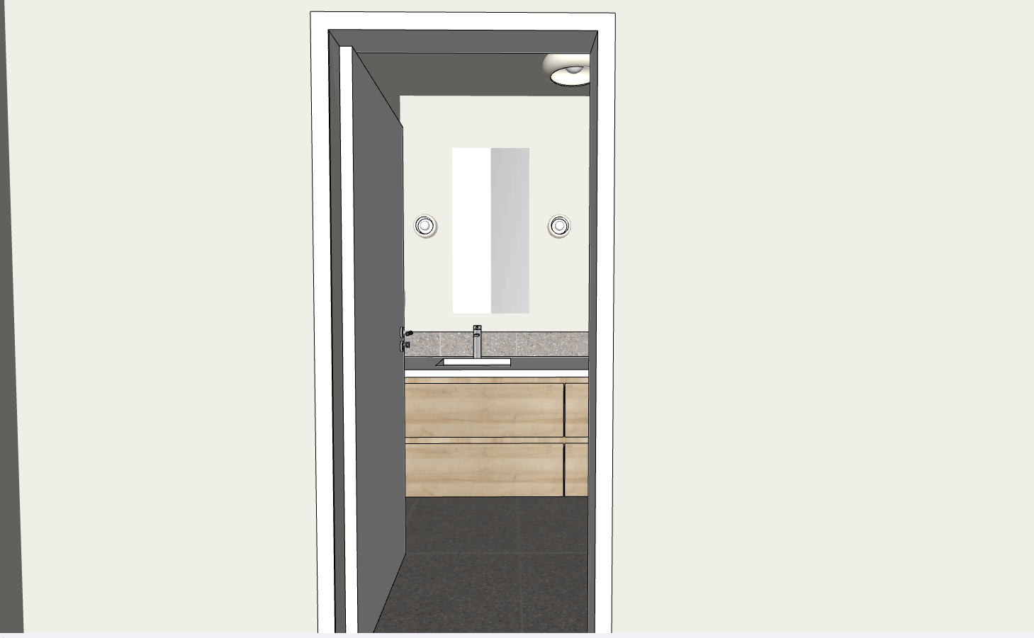 light warm grey walls white countertop light grey terrazzo tile ceramic sconces soft sunlight realistic enhance material and details keep all design materials colors and composition unchanged realism