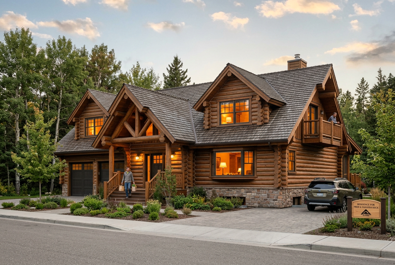 exterior shot show wider image more sky show cars in parking lot more people change the color of the try by entry to red japanese maple