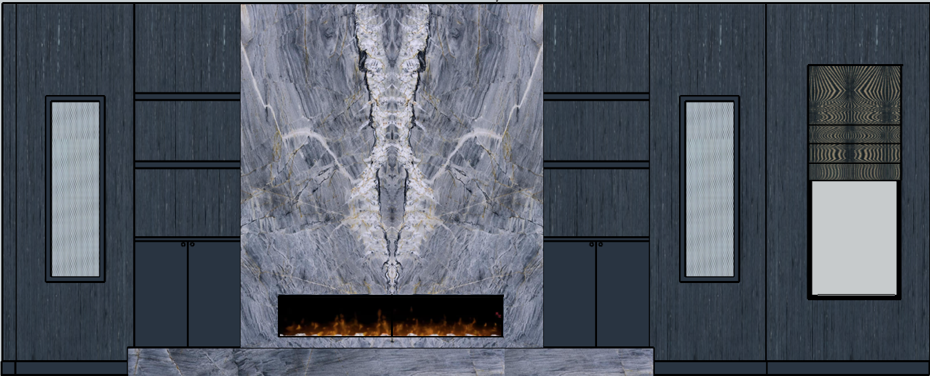 maintain exact stone blue painted cabinets vertical blue grass cloth on the walls