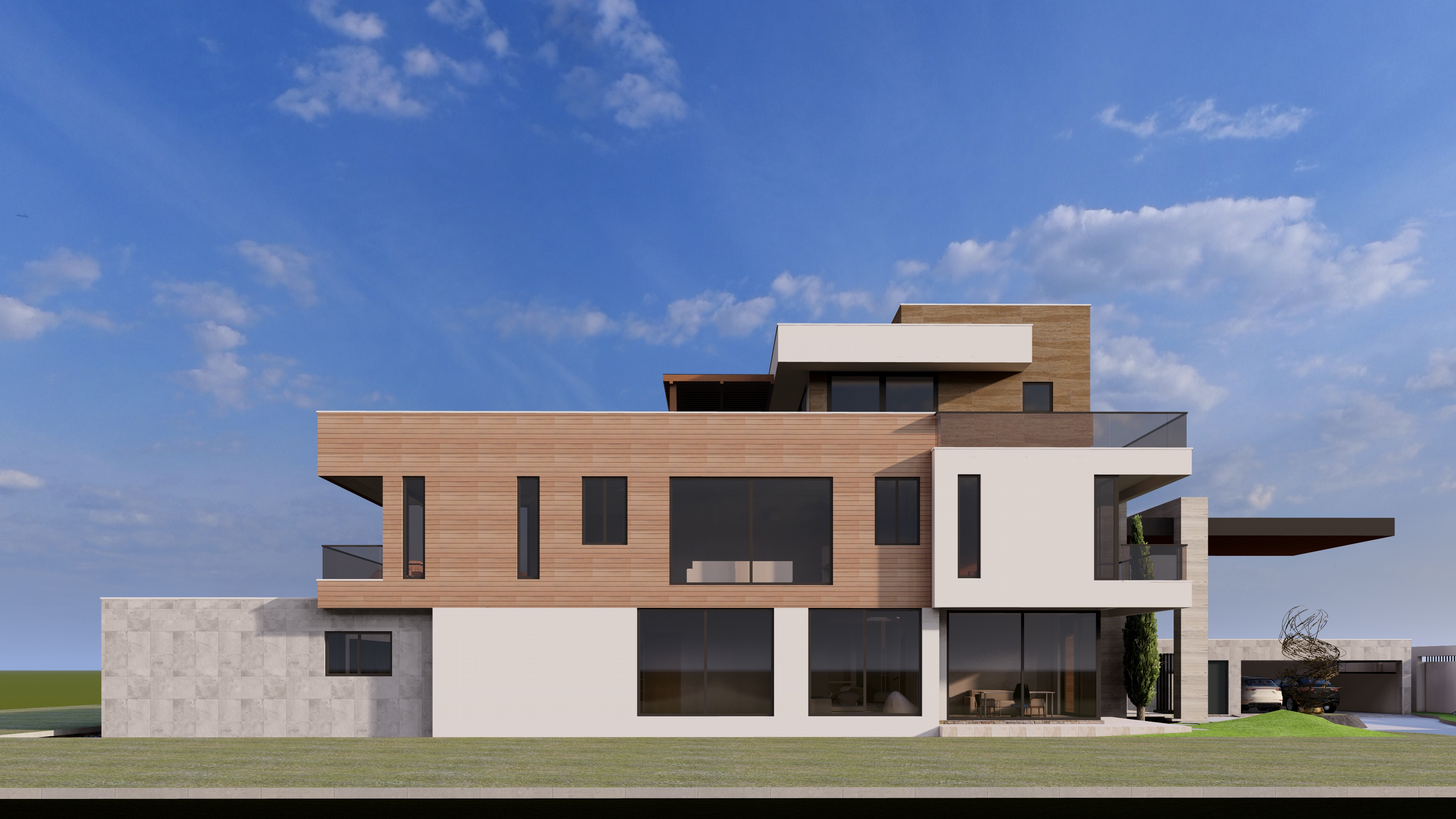 model of a house add few trees to background for context add few vegetation with very very few floral ones for context add hedge to the left side should look lived in