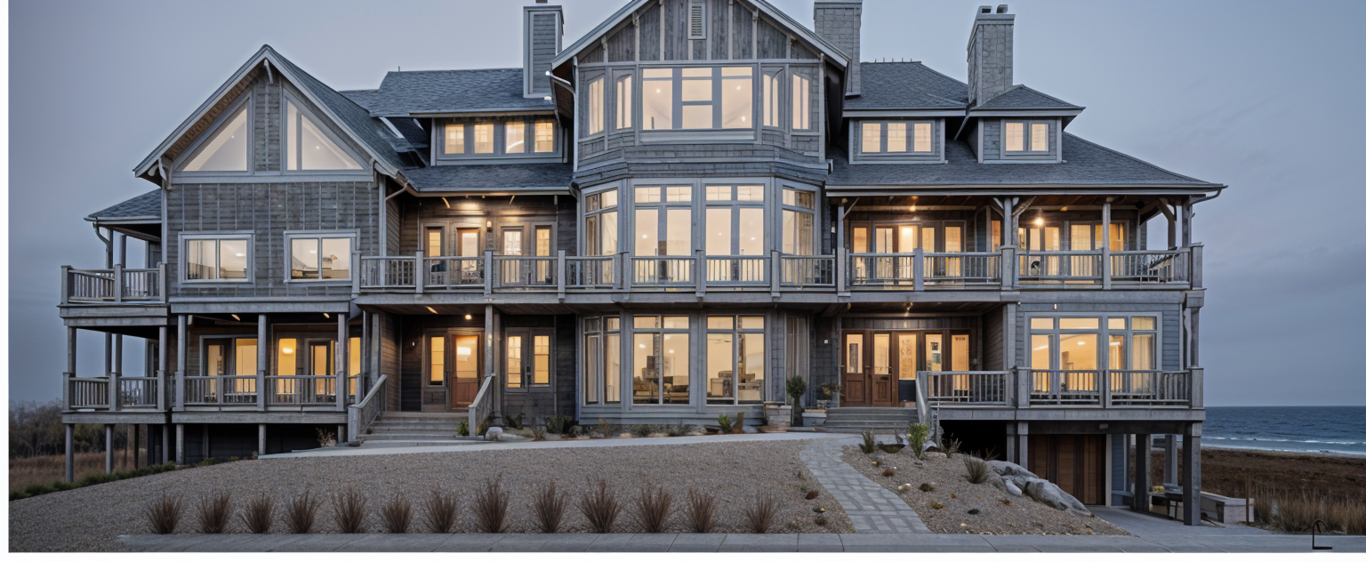 the picture shows a new ambulance station with white shiny aluminum panels above and a brick facade below on a bright autumn day the sun is shining through the clouds after the rain people are walking with open umbrellas the ambulance has its emergency lights on in the partially wet asphalt surfaces and sidewalks covered with light concrete slabs in front of the building reflections of the sky and nature and the building can be seen behind the building is a slightly autumn colored forest in yellow and green autumn shades the light of the picture is slightly cold with a high depth after the rain the vehicles have their lights on in front of a garabe is a white van with the markings of the ambulance