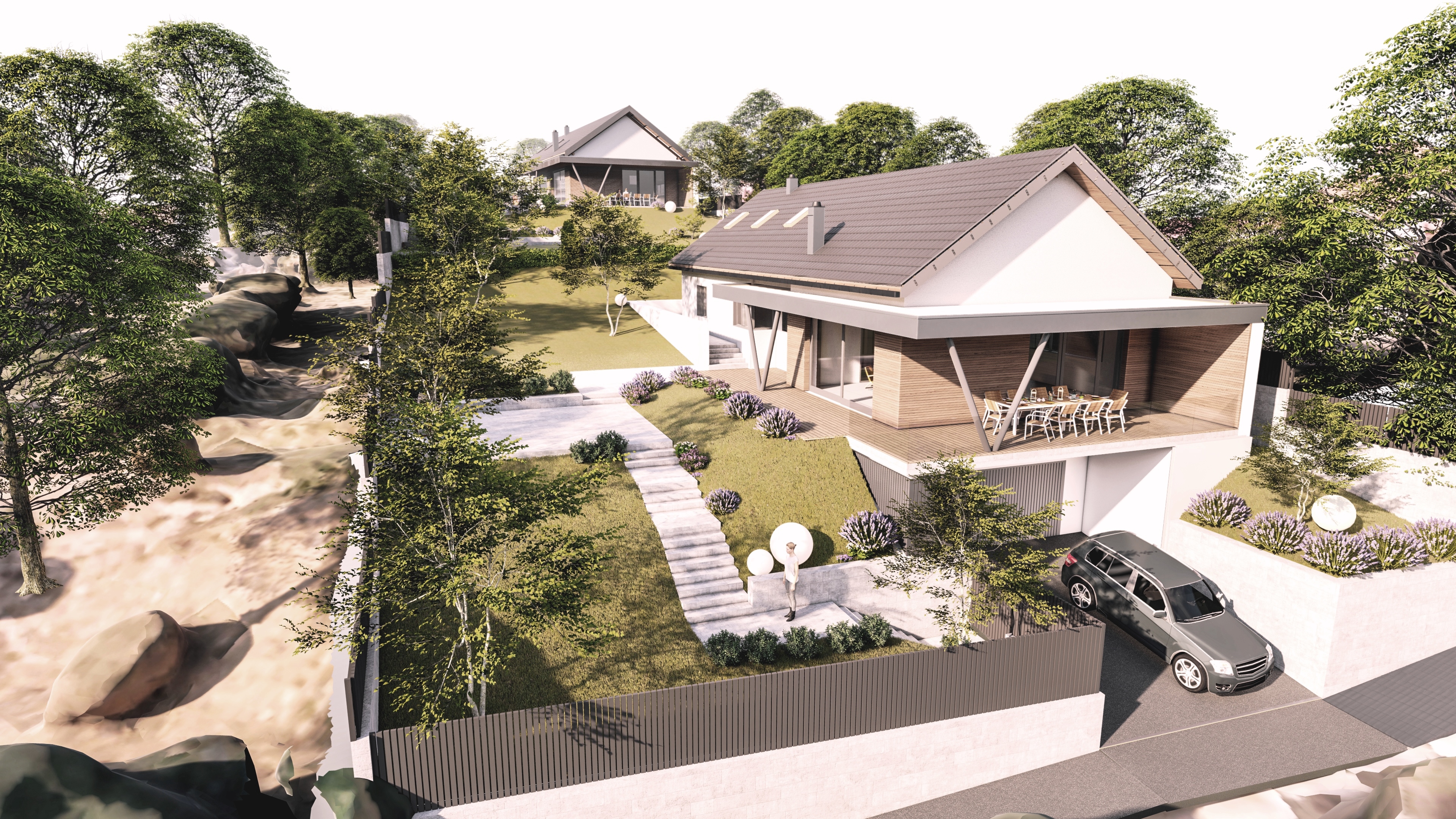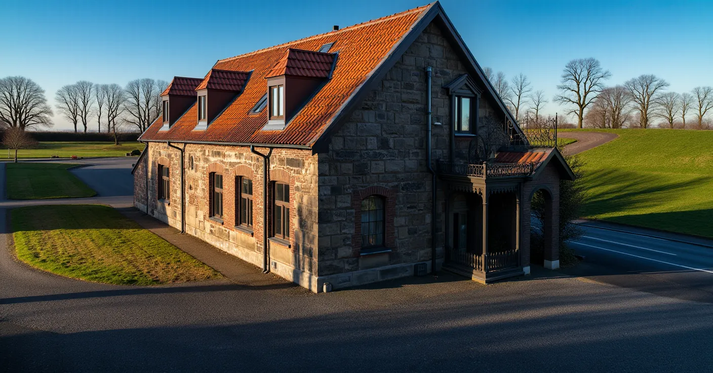 important preserve the existing geometry and the existing context exactly as provided do not modify alter reinterpret add remove scale or reshape any geometry do not change the site surroundings street layout neighboring buildings vegetation or context elements do not modify geometry scale proportions buildings road layout sidewalks or surrounding context in any way do not modify text soft sunnyt noon atmosphere diffused neutral natural daylight with subtle warm tones cinematic architectural mood warm interior lighting 3000k glowing from inside creating strong contrast between cool exterior and warm interior large glass surfaces with realistic reflections soft mirror effect subtle environmental reflections of sky and surroundingsimportant do not add new windows
