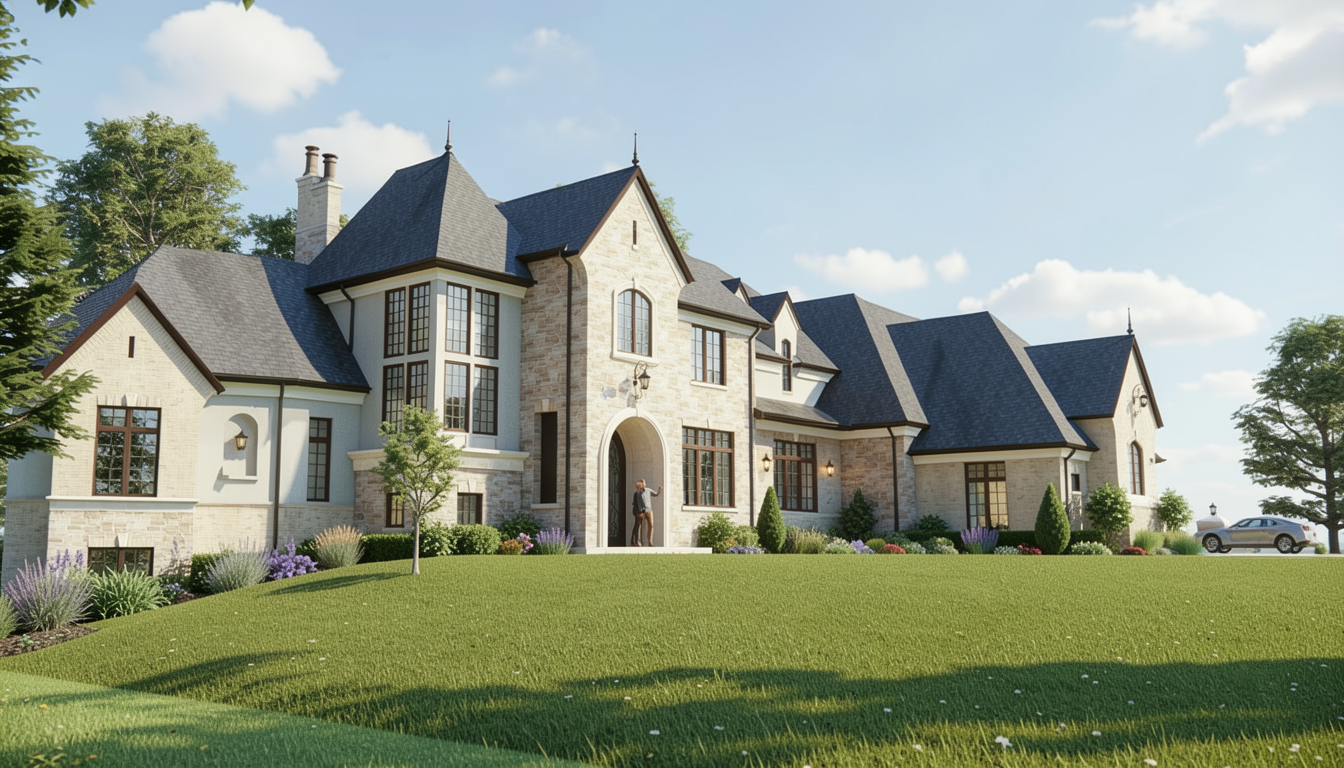 kapp architectural and structural details no changes to the design more people and cars in front of the building one yellow tow truck infant of the building a few persons on the 3rd floor balcony a few light clouds an a yellow helicopter in the sky